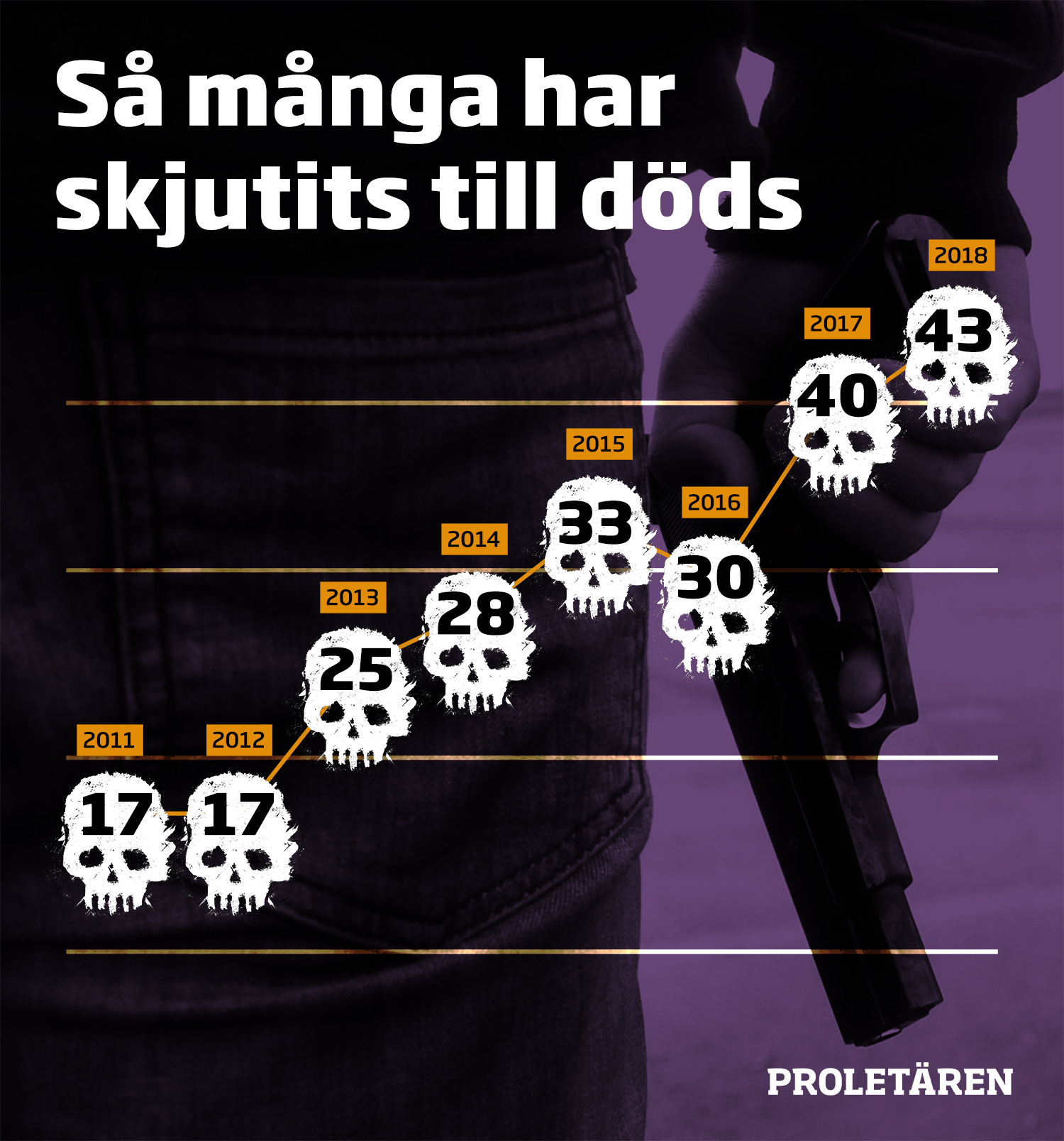 Skjutvapenvåldet i Sverige kräver allt fler liv. Foto: Proletären