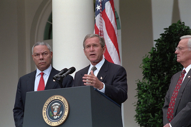 George W Bush använder frasen ”krig mot terrorismen” för första gången.
