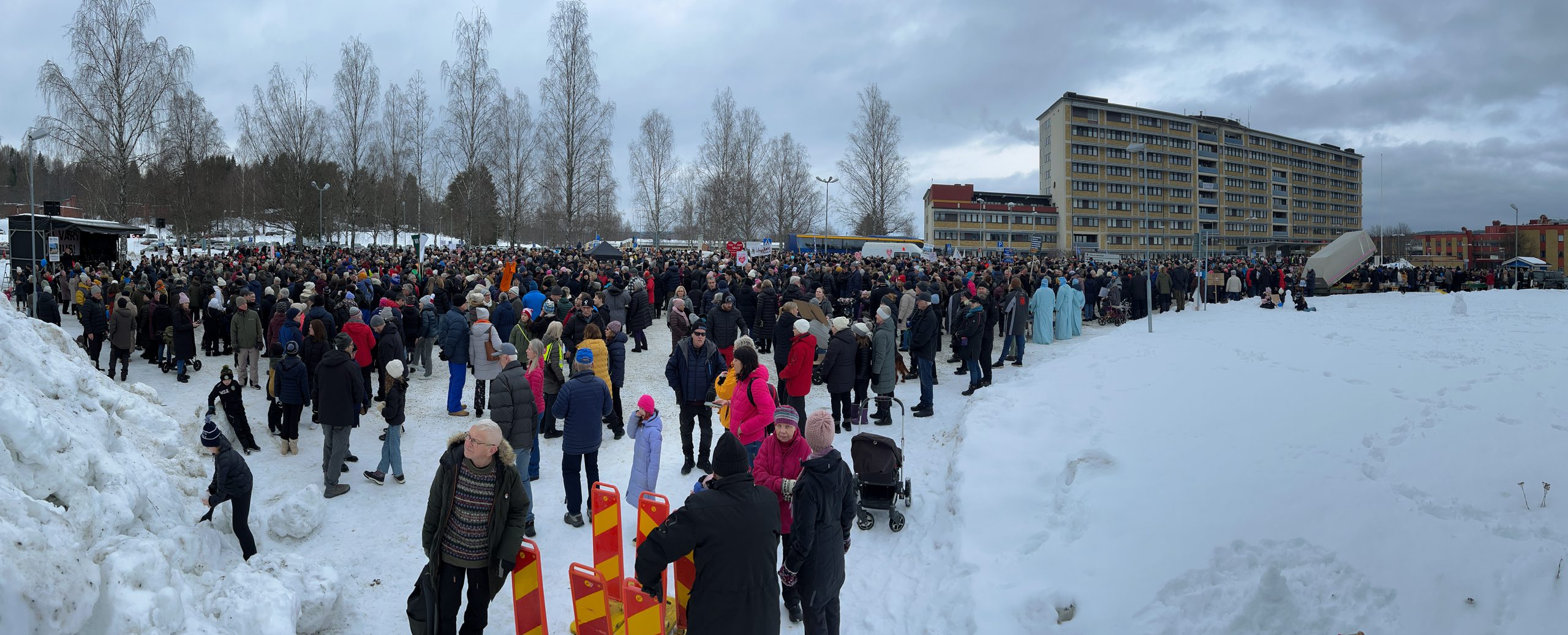 Tusentals demonstrerade i Sollefteå i lördags mot region Västernorrlands planer på att lägga ner Sollefteå sjukhus. Samtidigt hade ytterligare hundratals anslutit direkt till protestmötet på sjukhusets parkering så när demonstrationståget anlände var där redan fullt med folk. Totalt samlade mötet på parkeringen 4.000-5.000 deltagare.