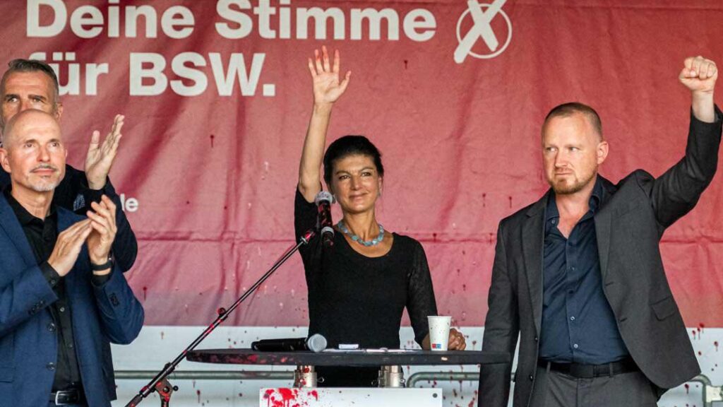 I svensk public service buntas den gamla kommunisten Sahra Wagenknechts vänsterpopulistiska BSW ihop med det nyfascistiska AfD. Det görs framför allt genom att påstå att det är två ”proryska” partier som gått starkt framåt, på grund av ett folkligt missnöje med nedskärningar för vanligt folk samtidigt som det rullar miljarder till tysk upprustning och Natos vapensändningar till Ukraina.
