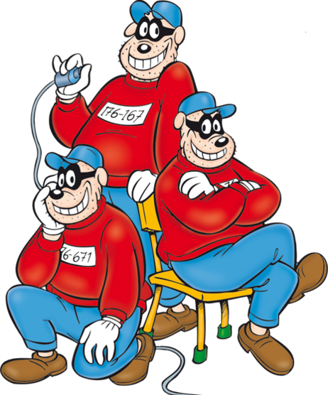 Björnbusarna, avindividualiserade, med nummer istället för namn, är sprungna ur Ankeborgs trasproletariat. Identitets-oredan förvärras ytterligare i och med det faktum att de är hundar, inte björnar (engelska: Beagle Boys).