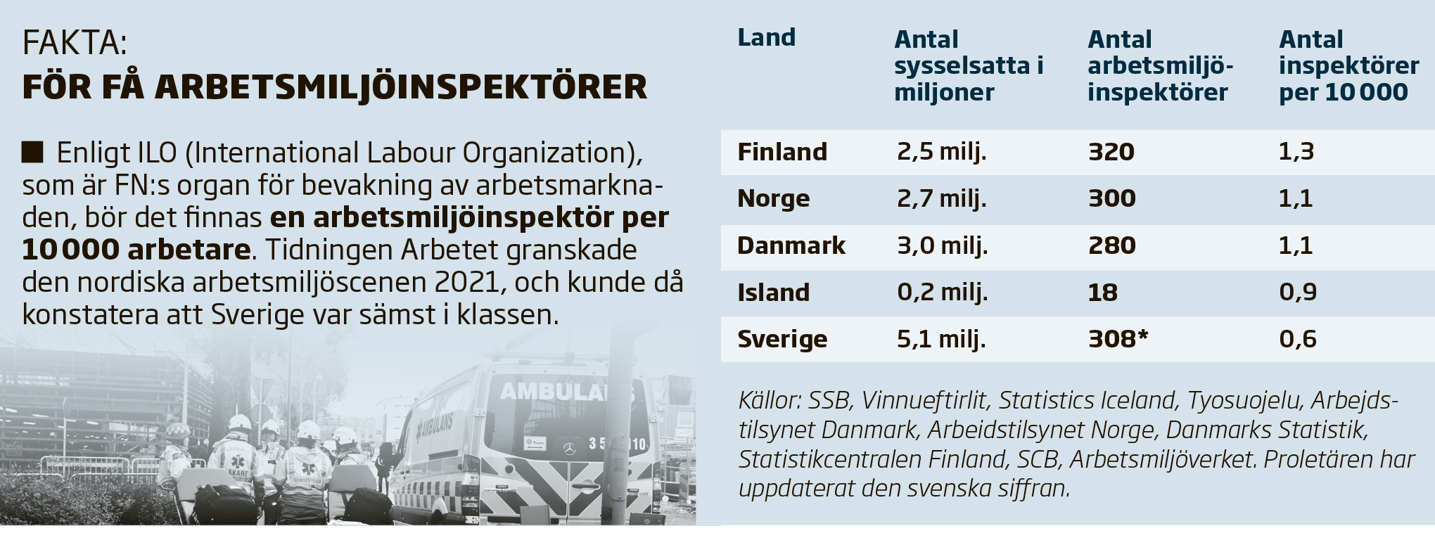 – Vore vi dubbelt så många inspektörer så kunde vi göra dubbelt så många inspektioner, säger Johan Larsson till Proletären. Vi kommer aldrig att kunna vara på alla arbetsplatser men i alla fall på fler än vi är idag.