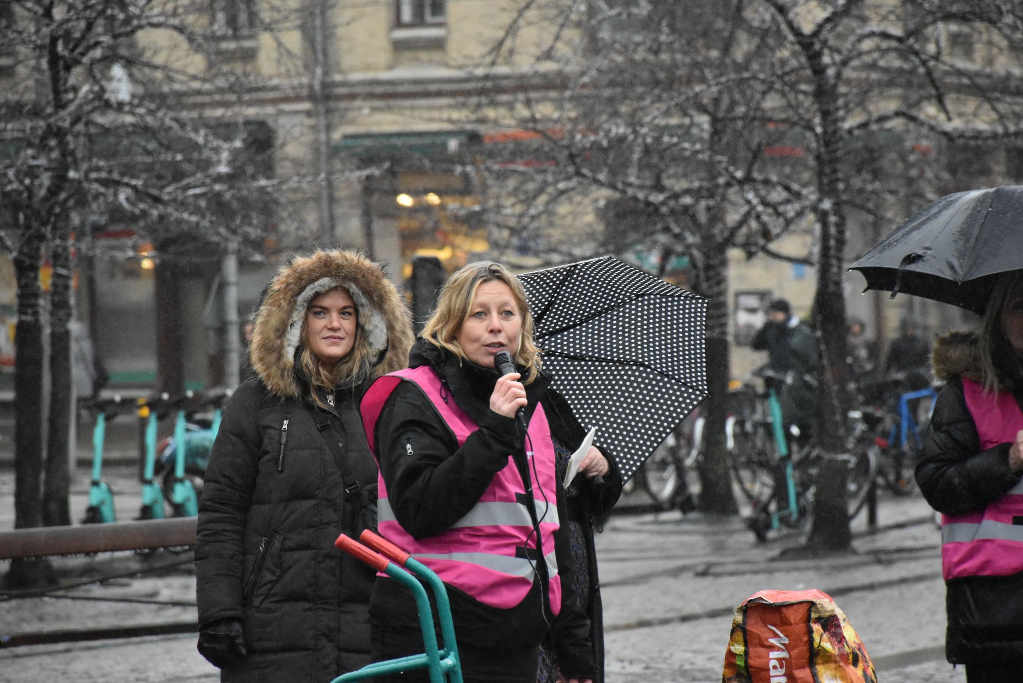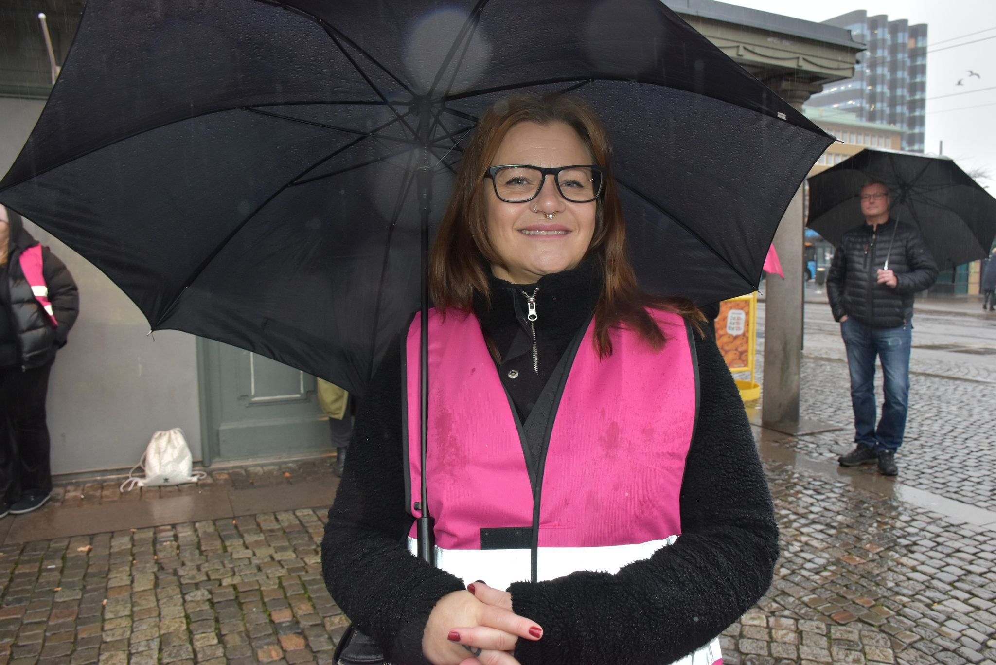 Cecilia Johansson var en av flera från föreningen som var på plats för protestera mot nedskärningshoten inom beroendevården.