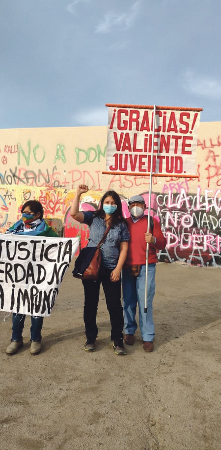 Jag deltog i 11 september-demonstrationen som startade på Plaza de los Heroes och avslutades på kyrkogården Cementerio general. Det var mycket folk från olika organisationer. Jag kunde se fackföreningar, organisationer för släktingar till fängslade och försvunna, till de mördade under diktaturen, till de mördade sedan 2019, till de gripna sedan 2019, till dem som förlorat synen från polisbeskjutningar under demonstrationer, grupper från det kommunistiska ungdomsförbundet och partiet, från det revolutionära vänsterpartiet MIR med flera.