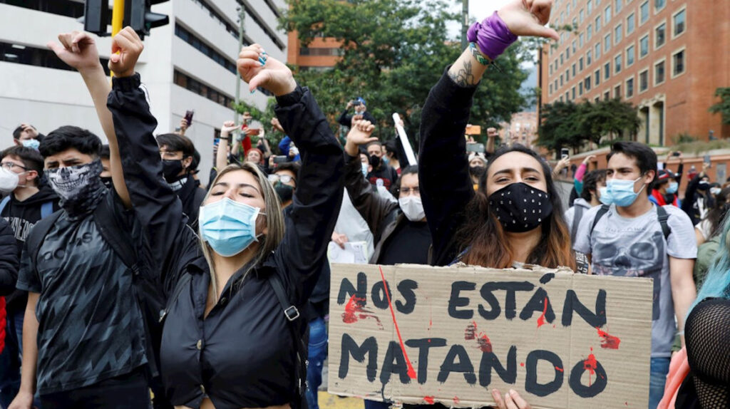Efter fortsatta protester – som likt de som inleddes i Chile hösten 2019 alltmer riktar sig mot hela det nyliberala systemet som hålls under armarna av den statsstödda terrorismen i Colombia – har Duque manat till ”nationell dialog” med de protesterande.