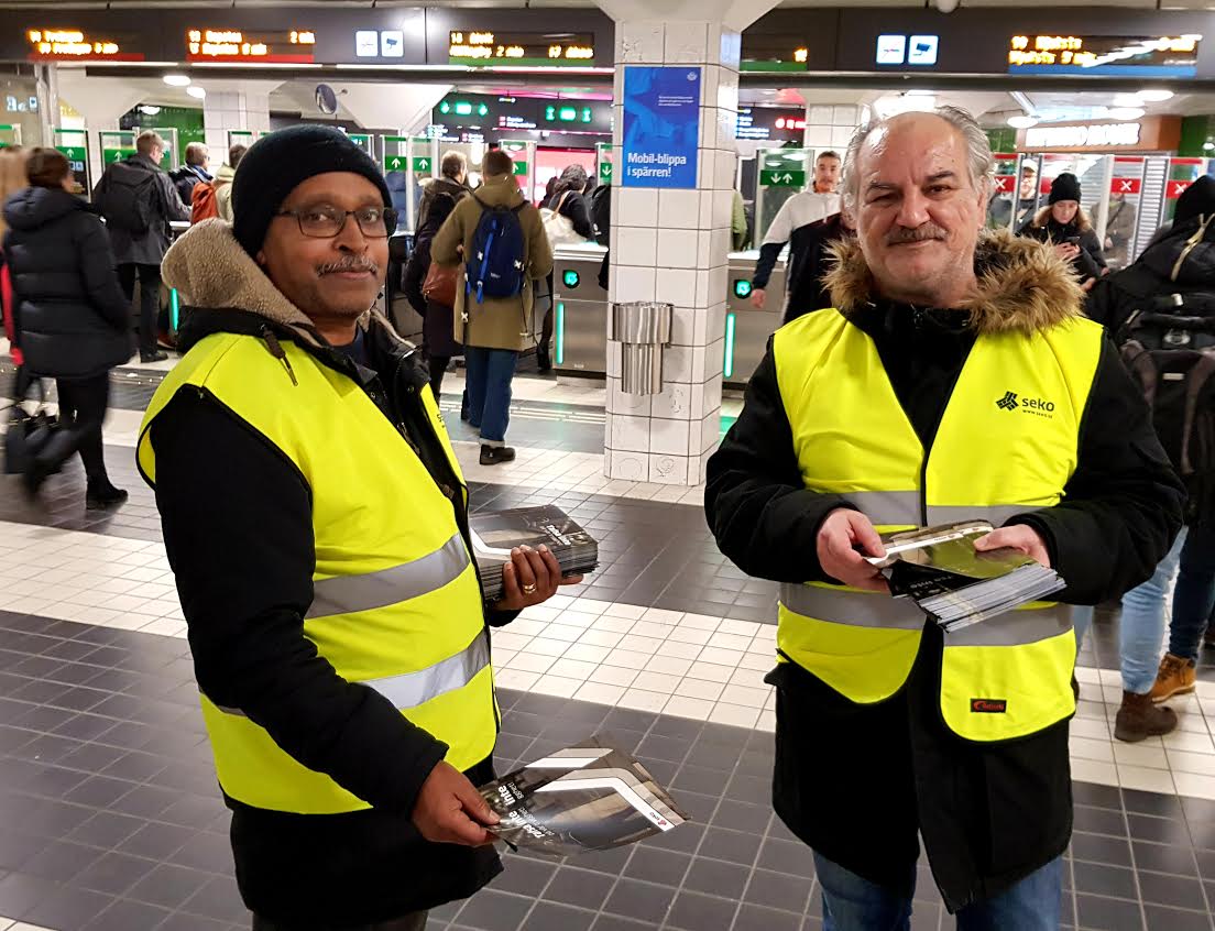 Nu kampanjar Seko, runt om i Sverige mot problemen. I ett flygblad med rubriken ”Tafsa inte på vår trygghet”, upplyste järnvägsarbetarna Semere Gerezgiher och Jannis Konstantis från Sekos klubb 111, resenärer i Stockholms tunnelbana om de problem som järnvägspersonalen står inför.