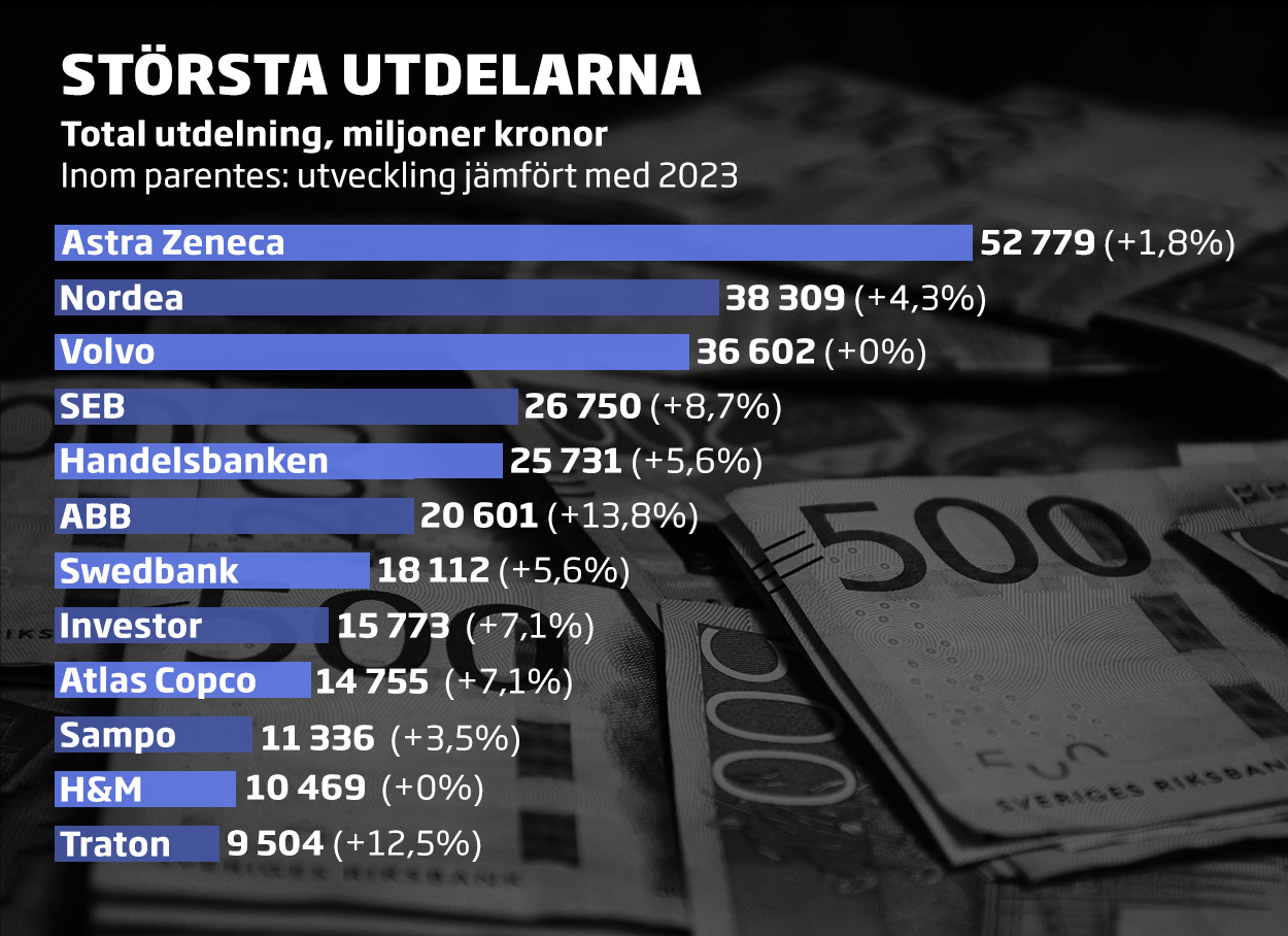 De tolv högsta aktieutdelningarna för 2024. Foto: Proletären