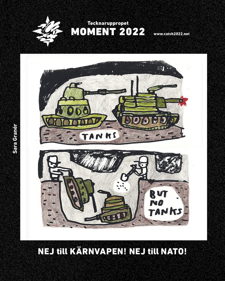 Sara Granér är en av de hundratalet bildkonstnärer som är med i tecknaruppropet mot Nato. Ett initiativ som drogs igång i våras när politikergräddan meddelade att de tänkte slänga 200 år av alliansfrihet på soptippen.