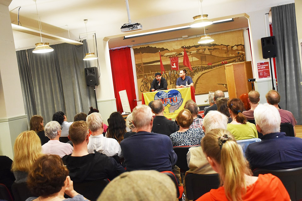 Mötet i Göteborg arrangerades av Fackliga Världsfederationen och ägde rum på Marx-Engelshuset på Fjärde Långgatan, vars mötessal fylldes till bredden av nyfikna deltagare.