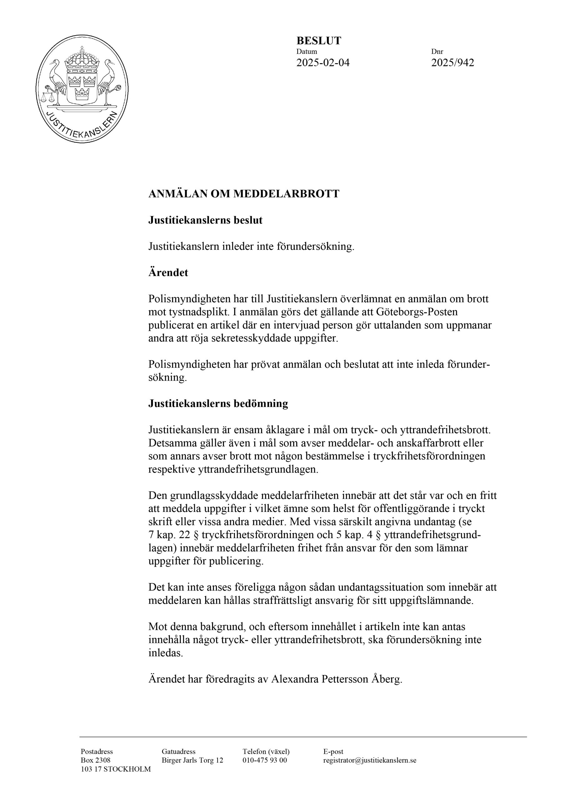 – Om min arbetsgivare i media går ut och säger att jag är uppsagd med tanke på ”rikets säkerhet” får det en jättestor påverkan på hela min närmaste omgivning, det är någonting jag kommer behövs prata med allt från barnens lärare till fotbollsklubben om. Nyheten att det inte ens inleds en förundersökning kommer inte ha samma genomslag. Och jag kan inte undgå att tänka att det är med i beräkningen.