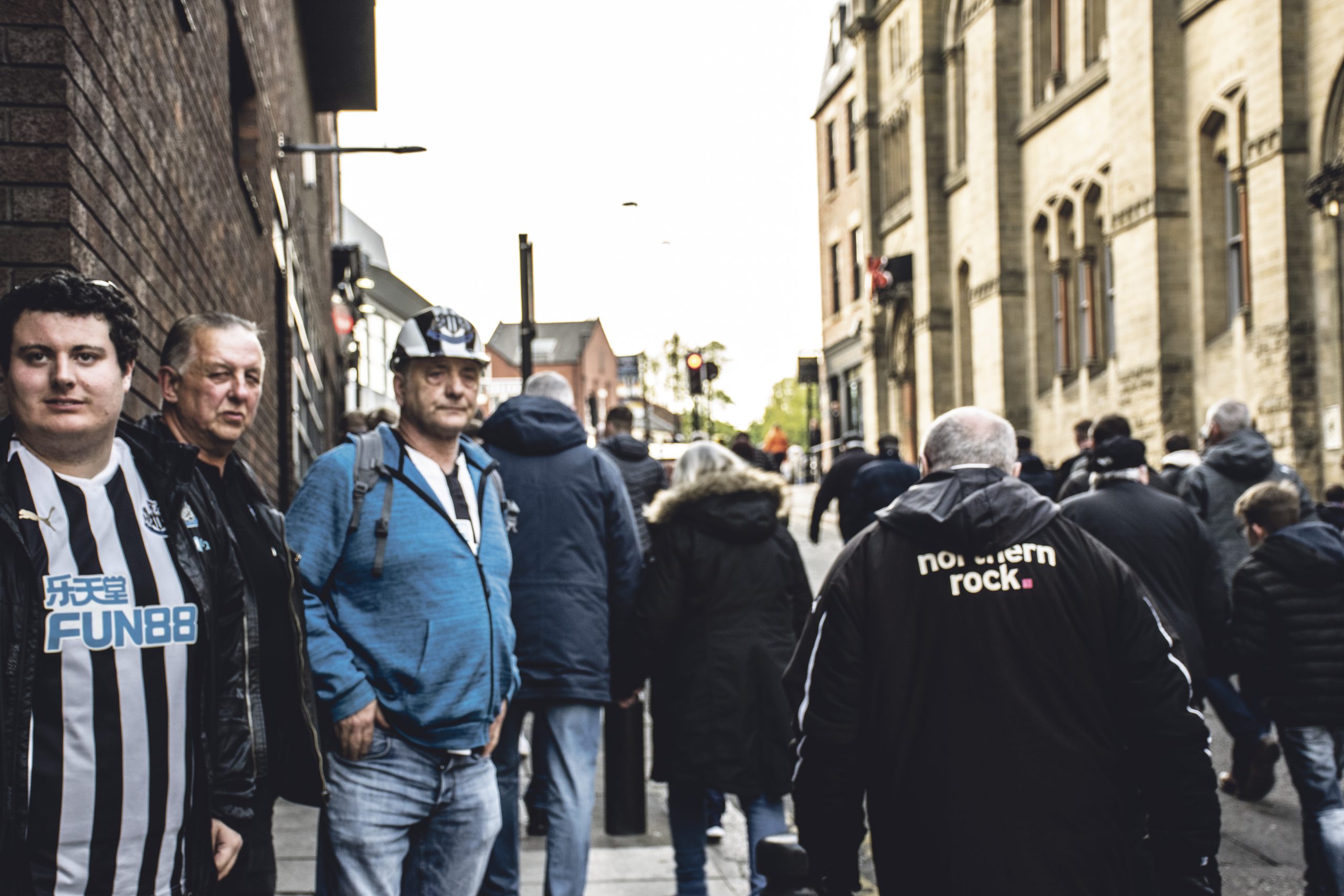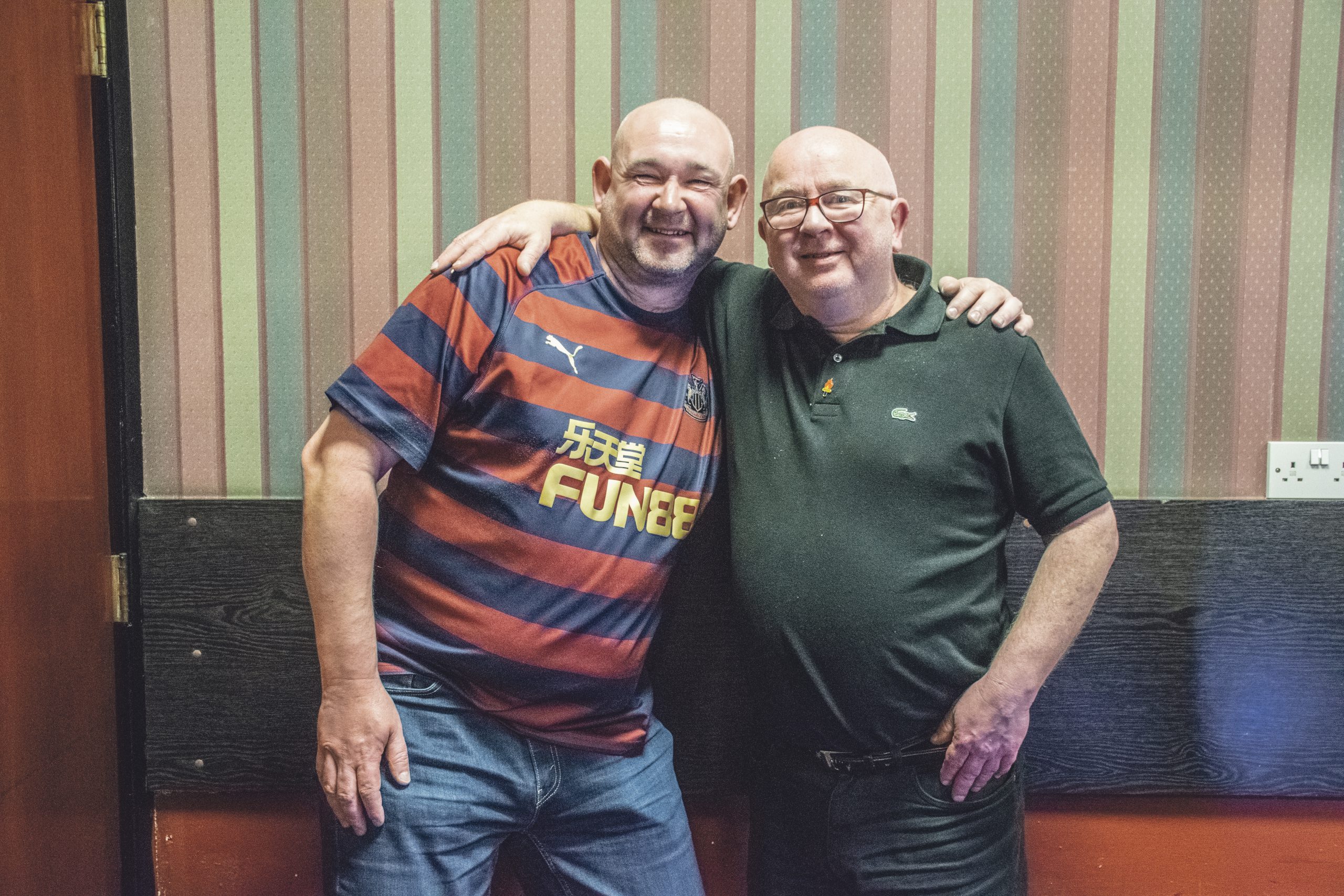 Några gator ner från St. James’ Park ligger Newcastle Labour Club, en stor arbetarpub vars namn inte har med Labourpartiet att göra. Där möter vi Paul Garvin och John Morgan som laddar inför matchen. De kommer från olika städer och håller på olika lag men framhåller att de har mer gemensamt än som skiljer dem.