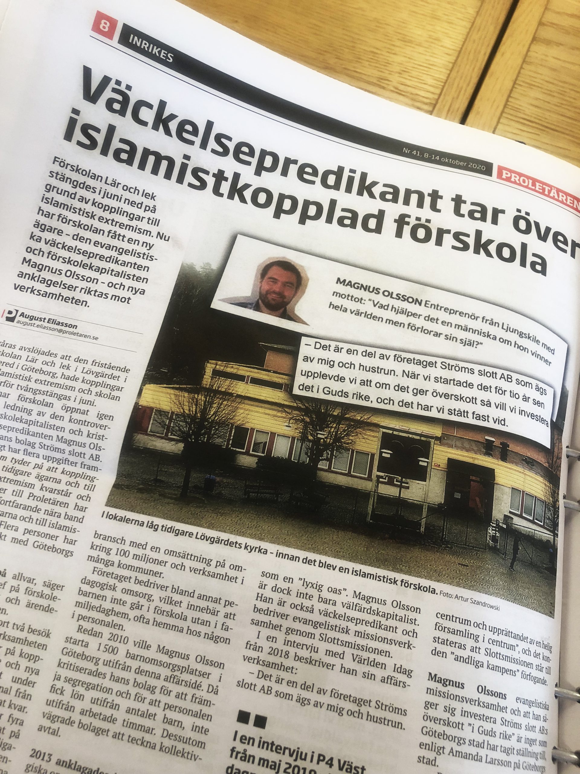 Uppgifterna i inlägget var hämtade från bland annat Proletärens artiklar om Ströms slott AB, i samband med att bolaget tog över förskolan Lär och lek i Angered hösten 2020. Förskolan hade då stängts då ägarna visat sig ha samröre med islamistisk extremism.