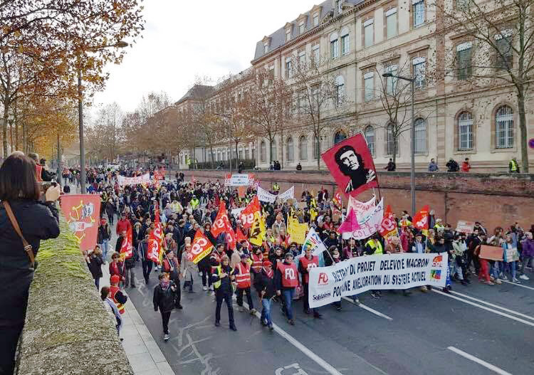 De stridbara järnvägsarbetarna har de senaste åren i flera omgångar kämpat både mot regeringens avreglering av järnvägen, och mot pensionsreformerna, vilket Proletären rapporterat om. Samtidigt har proteströrelsen Gula västarna kämpat mot höjda bensinpriser, privatiseringar och höjda levnadsomkostnader i allmänhet.