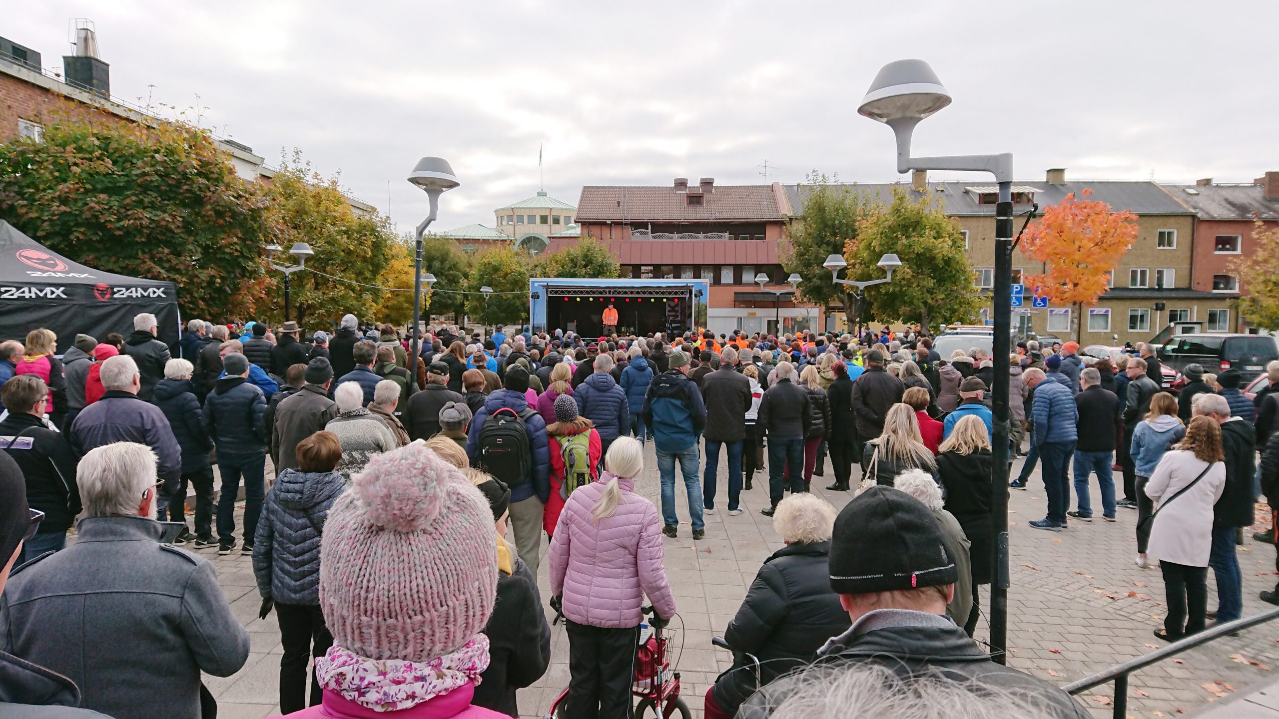 I lördags manifesterade Ångeborna mot Norrskogs överraskande beslut att lägga ner sågverket i Östavall. En stor grupp Östavallsarbetare i orange överdragskläder deltog på mötet.