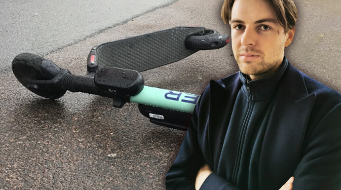 Tankarna avbryts av en häftig duns. En duns varje cyklist i Stockholm hört många gånger. Dunsen av en sparkcykel som slår i asfalten. Min hjärna spelar upp en video av pojkarna som faller ned framför Lidingös värsta bilmodeller. Mitt ansikte vrider sig bakåt och jag ser att ungarna trillat ner på trottoaren – denna gång har de, tack och lov, kommit lindrigt undan.