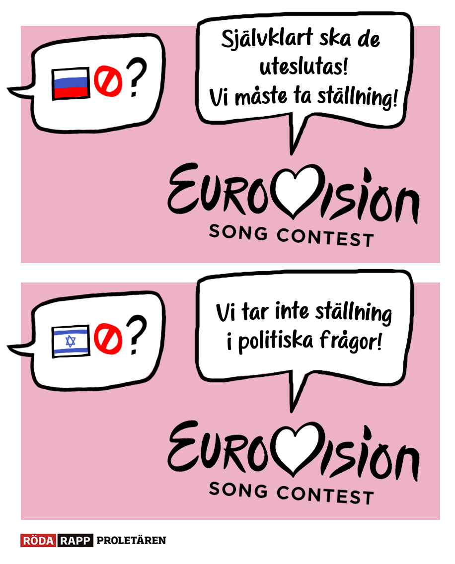 Eurovsion 2024 äger rum i Malmö 7-11 maj. Det planeras stora protester redan nu (om Israel tillåts delta). Du kan läsa mer om protestkampanjen på stoppaisrael.nu
