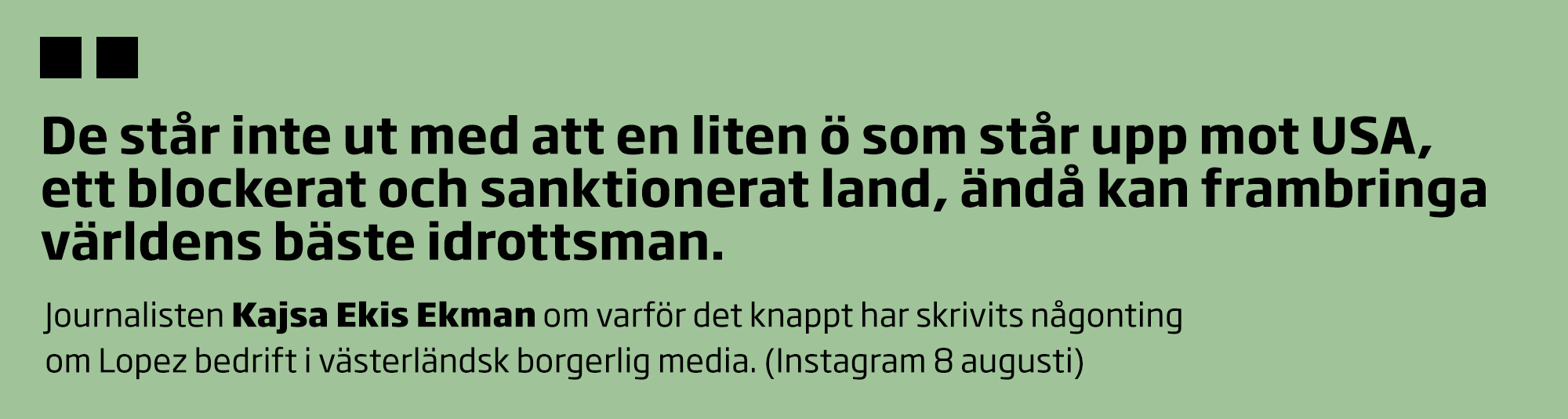 Ett guld tillägnat den kubanska nationen, som Lopez säger gjort det möjligt för honom att träna och idrotta på hög nivå. I Rio tillägnade Mijain Lopez sin guldmedalj till Fidel Castro och i Tokyo talade han om ”El Comandante” och hans ”stora engagemang för det kubanska folket”.