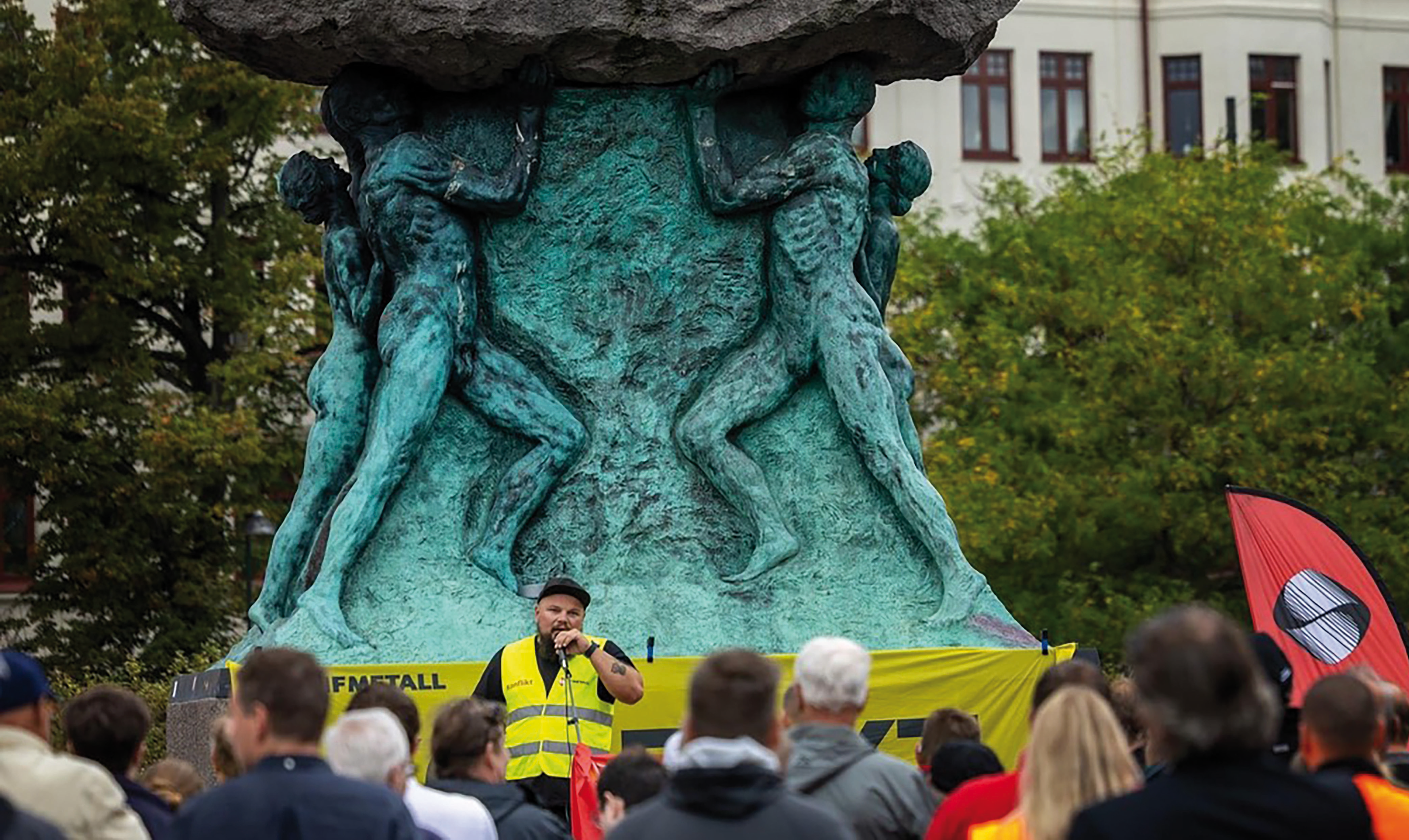 IF Metall avdelning 41 i sydöstra Skåne anordnade tisdag förra veckan en manifestation i Malmö till stöd för de strejkande arbetarna på Tesla. På plats fanns också medlemmar från IF Metalls tyska motsvarighet IG Metall.