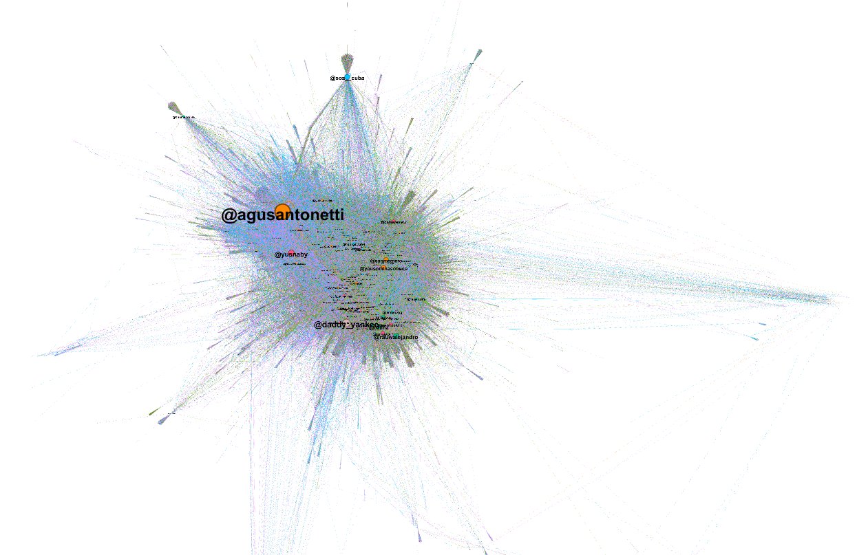 ”Jag analyserade två miljoner tweets med hashtaggen #SOSCuba, som började be om humanitärt bistånd för covid-offer med hjälp av artister och tusentals nyskapade konton och botar, och slutade i mobiliseringen på gatorna.”, skriver han i sitt första inlägg.