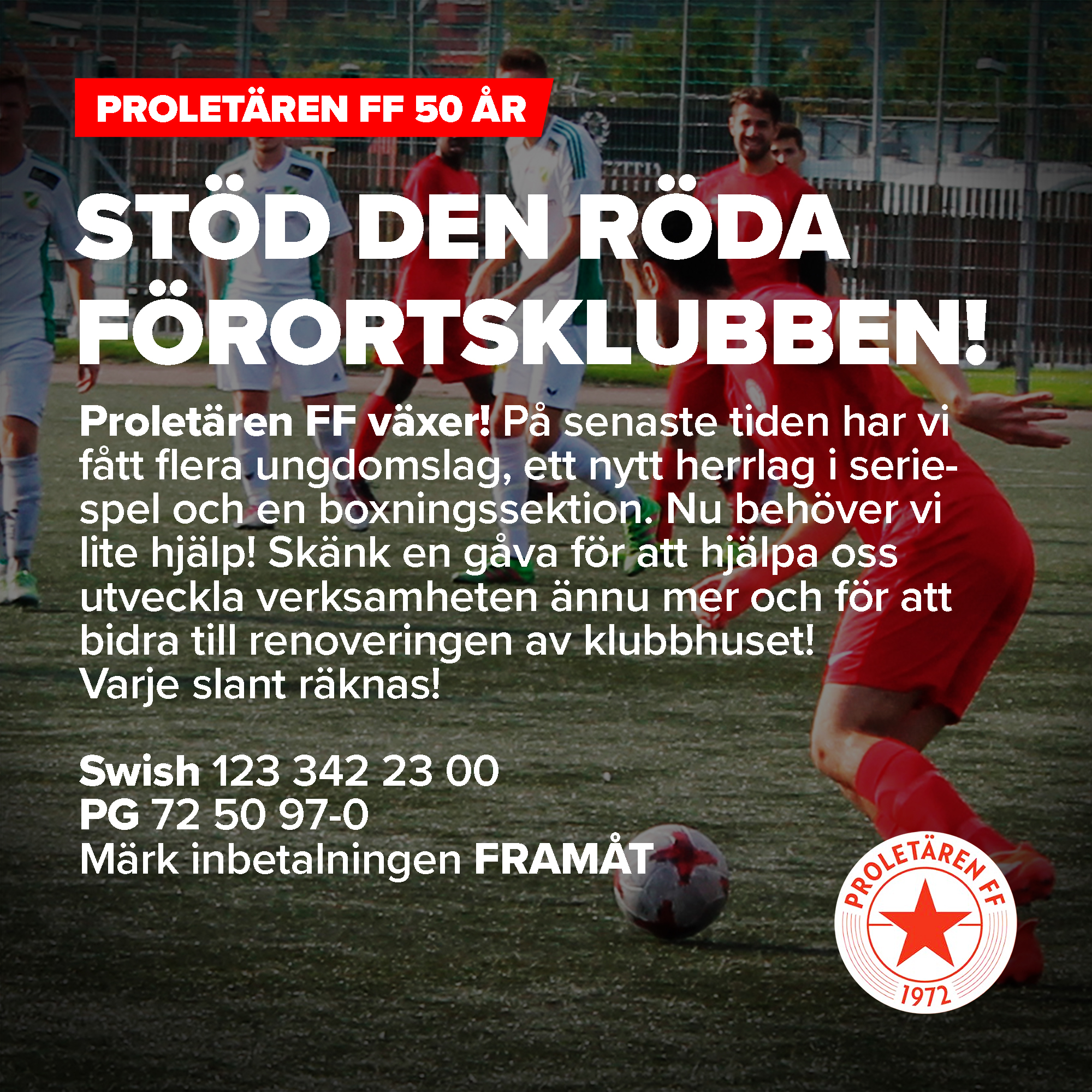 Förra året fyllde Proletären FF 50 år. Nu startar föreningen en insamling för att förhoppningsvis kunna hålla liv i föreningen i minst 50 år till.