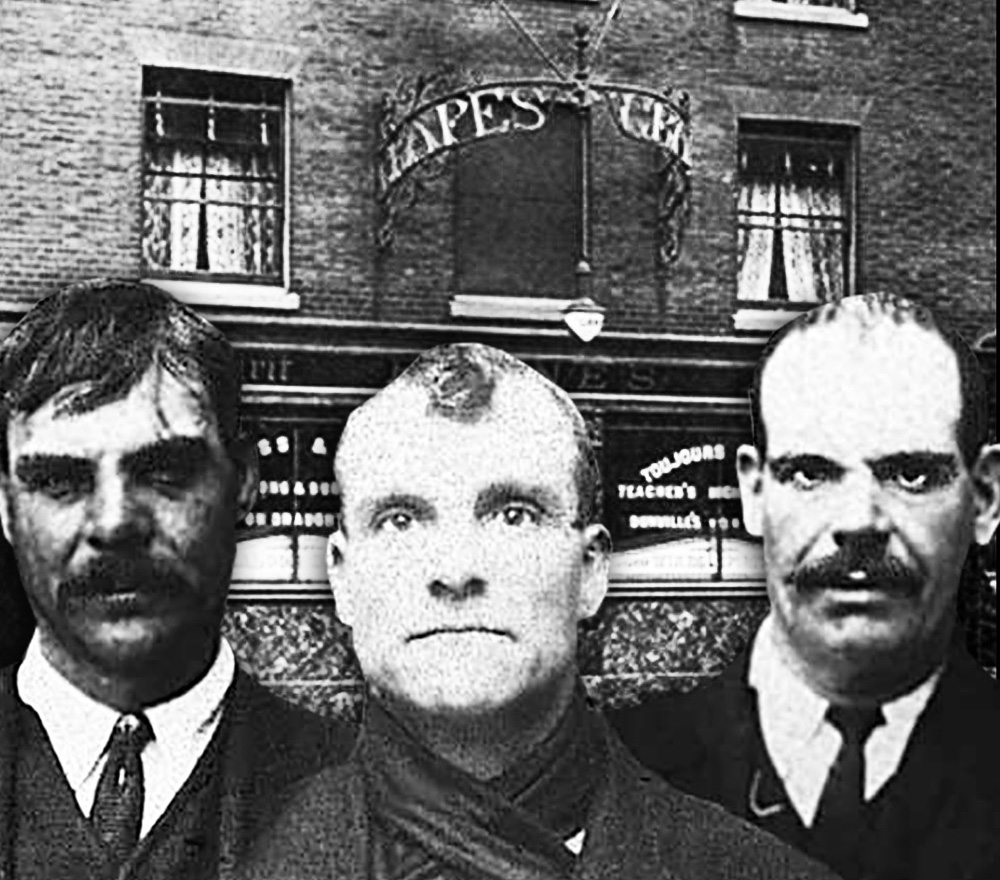 Bröderna Alfred, 25, Bertram, 26 och Thomas Slade, 27, skulle arbeta som eldare ombord på Titanic. Kvällen före avfärd hade de firat Alfreds födelsedag på puben Grapes tillsammans med smörjaren Alfred Penney, 25.