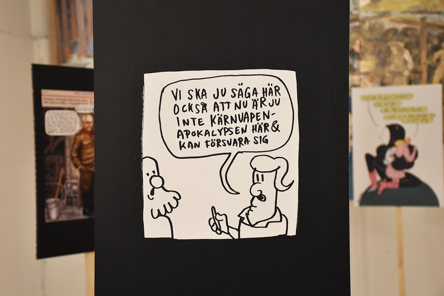 – Vi i Tecknaruppropet har en del att stå i under hösten. Bland annat ska Myndigheten för samhällsskydd och beredskap, som gått ut med information om Nato riktat till barn, få sina fiskar varma. Och så hoppas vi få se våra bilder i många demonstrationståg framöver! Den som vill använda någon av våra bilder kan höra av sig, mejladressen finns på vår hemsida.
