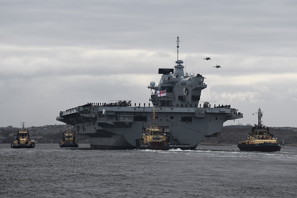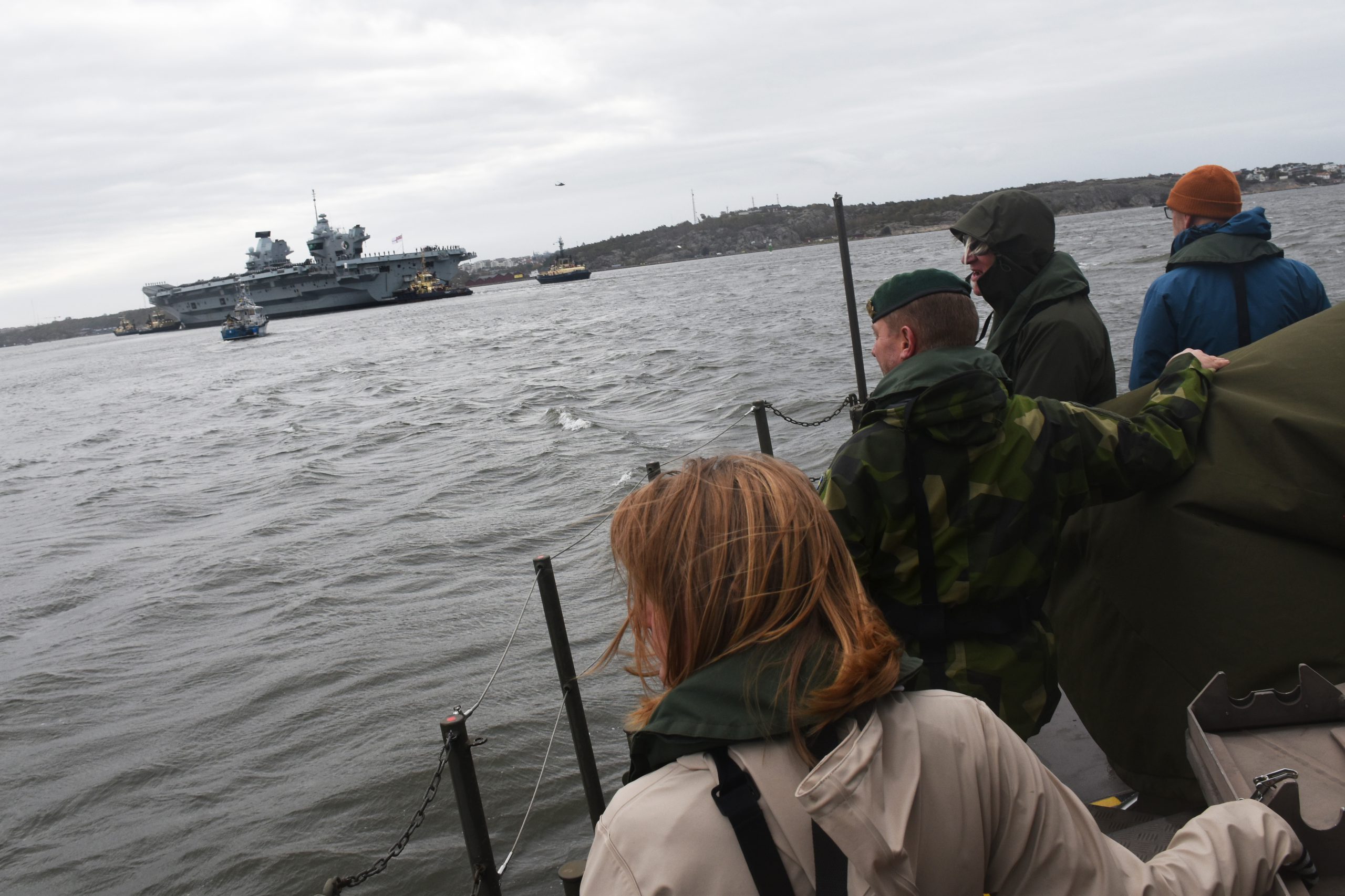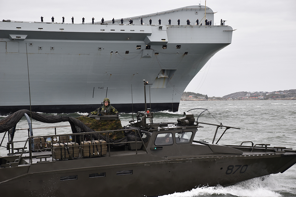 Queen Elizabeth är det största örlogsfartyget som besökt Sverige i modern tid, till och med större än USS Kearsarge som spände musklerna i Stockholm förra sommaren. Och det är som om den bortgångna drottningen själv anländer i hamn – hon eskorteras av stridsbåtar, korvetter, helikoptrar och Jasplan (med en flygkostnad på dryga 40.000 kronor i timmen).