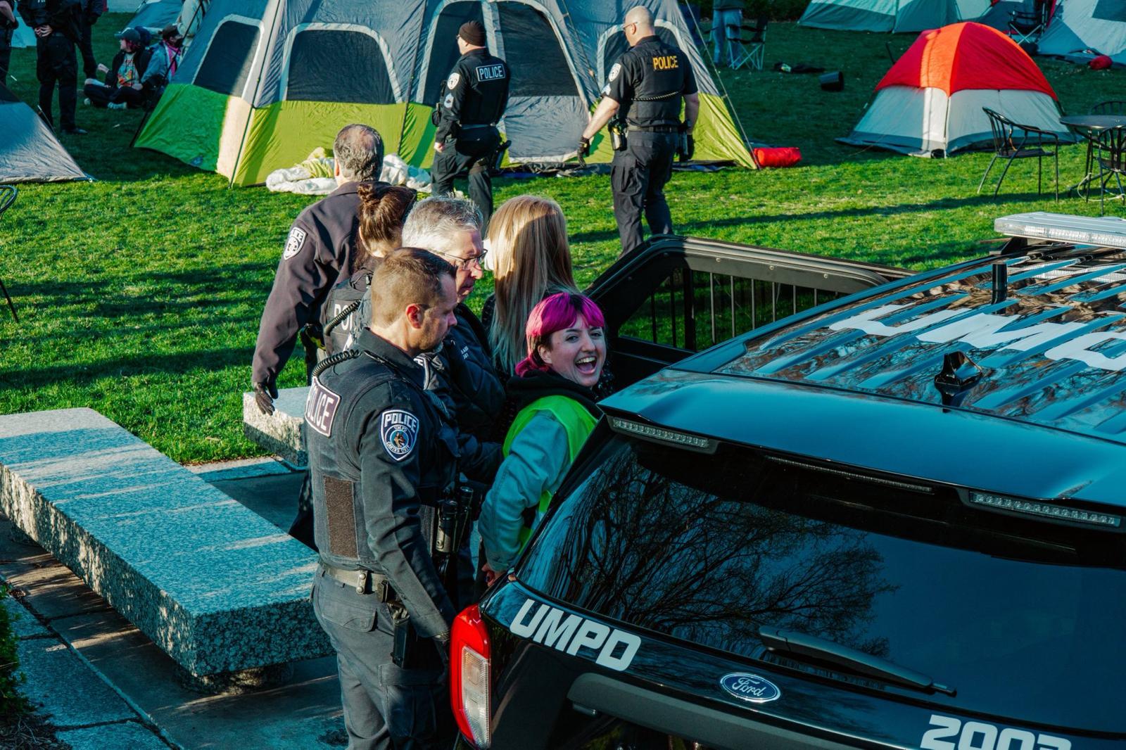 Demonstranterna fick en halvtimme på sig att utrymma området. Arrangörsorganisationen UMN Divest Coalition hade i förväg gjort upp vilka som kunde låta sig gripas och skickade iväg de andra.