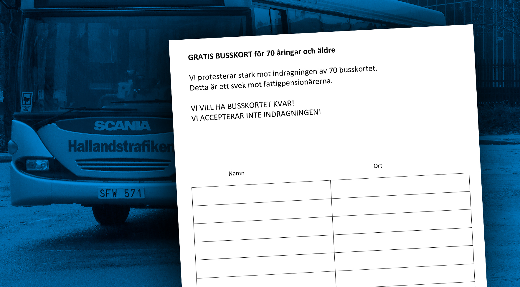 I fredags stod halmstadsborna Ulf Halldin och Stefan Johansson i sin hemstads stora köpcentrum Hallarna och samlade in namn mot en planerad försämring av kollektivtrafiken. Politikerna vill nämligen höja frikortsåldern från nuvarande 70 år till 75 år.
