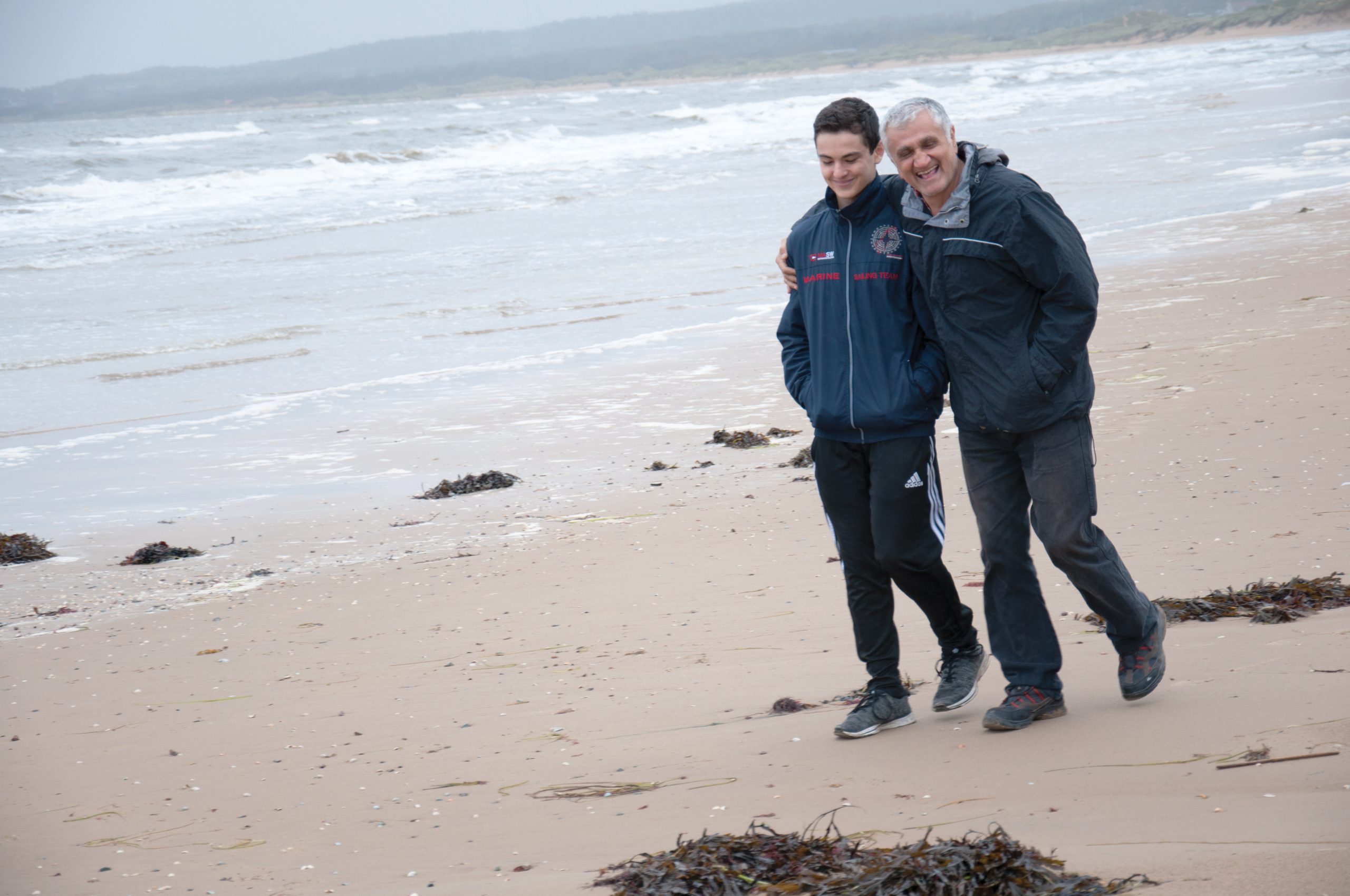 Så gör han alltid, påpekar sonen Julius. Alla gäster måste se Tylösand.