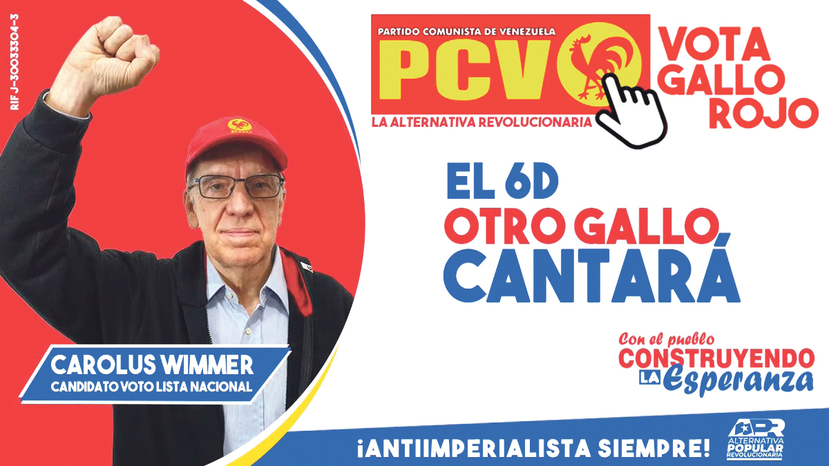 Efter att två andra vänsterpartier, PPT (Fosterland för alla), och Tupamaro, aviserat sin brytning med GPP inför valet har högsta domstolen diskvalificerat deras kandidaturer och tillsatt tillfälliga ledningar i de båda partierna. Det är bara PCV som fortfarande har en giltig kandidatur, därför manar alla organisationerna i APR till en röst på den välkända röda tuppen, kommunistpartiets symbol.