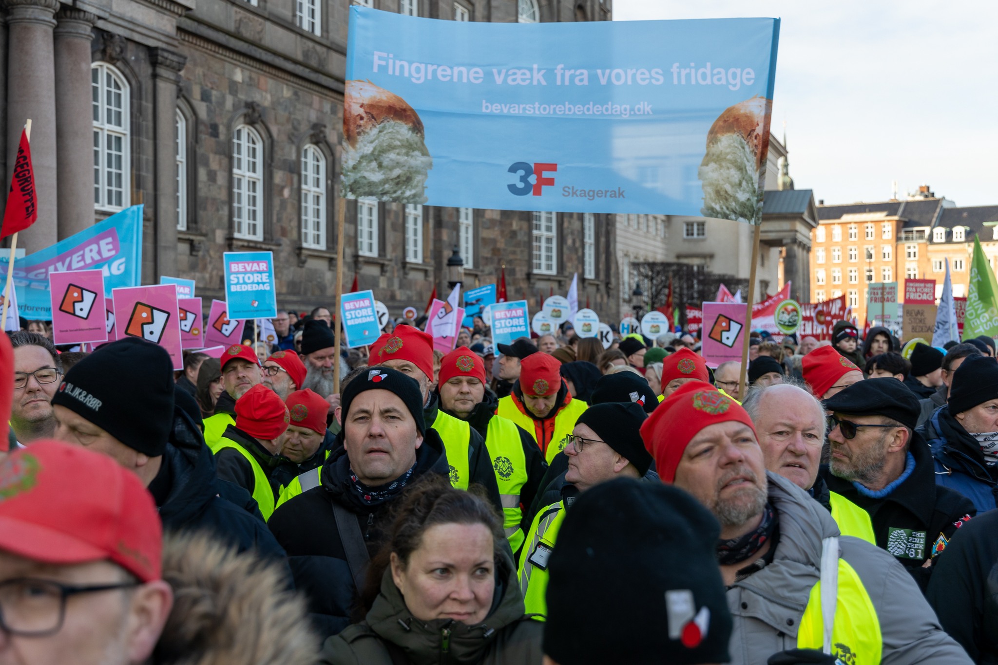 Förslaget möttes redan från start av stora protester. Inte minst från fackföreningsrörelsen som bland annat arrangerade en av Danmarks största demonstrationer någonsin utanför folketinget den 5 februari, där över 50.000 deltog.