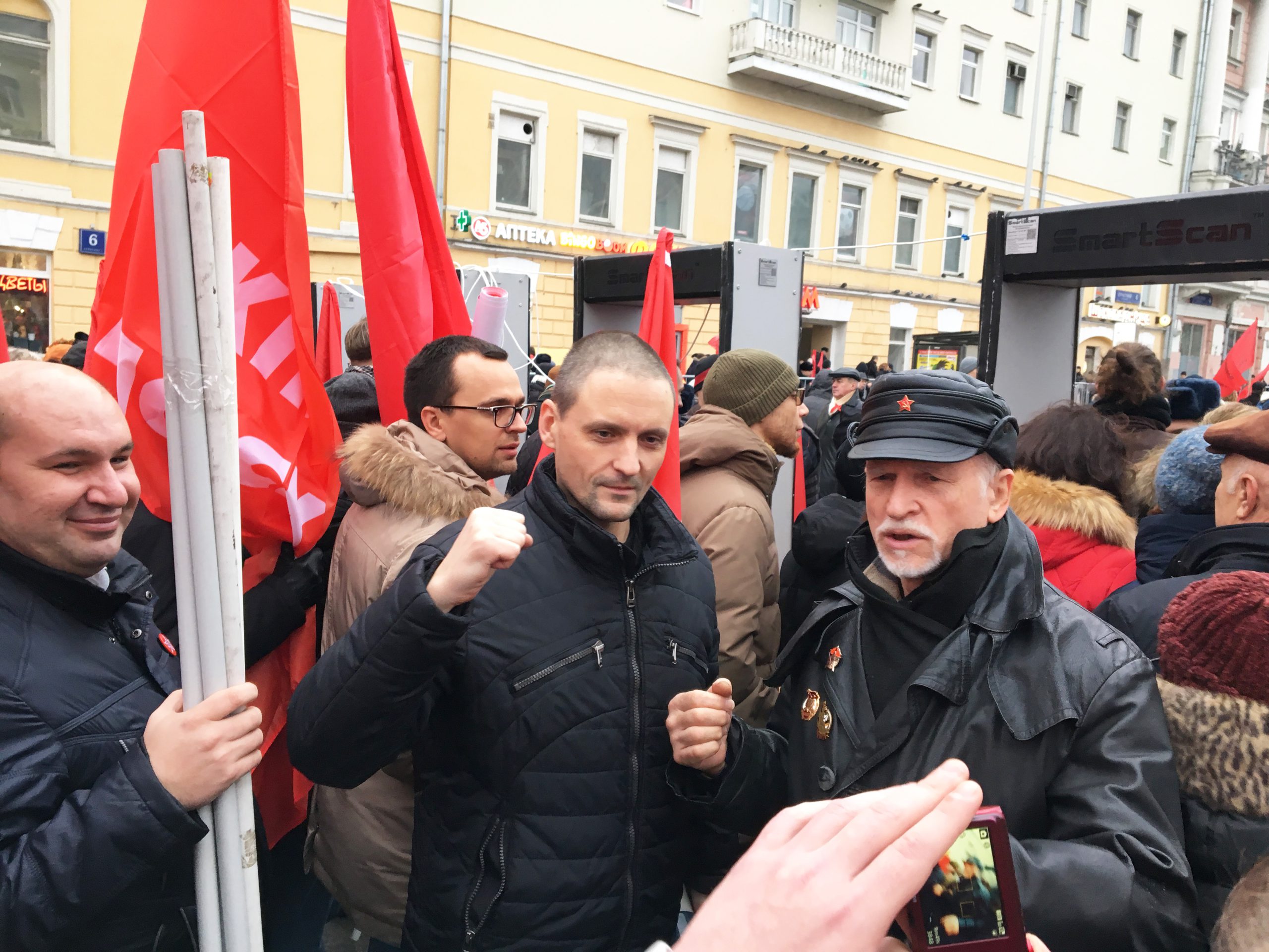 Vänsterfrontens ledare Sergei Udaltsov (mitten) tillsammans med RFKP-anhängare. Foto: Artur Szandrowski