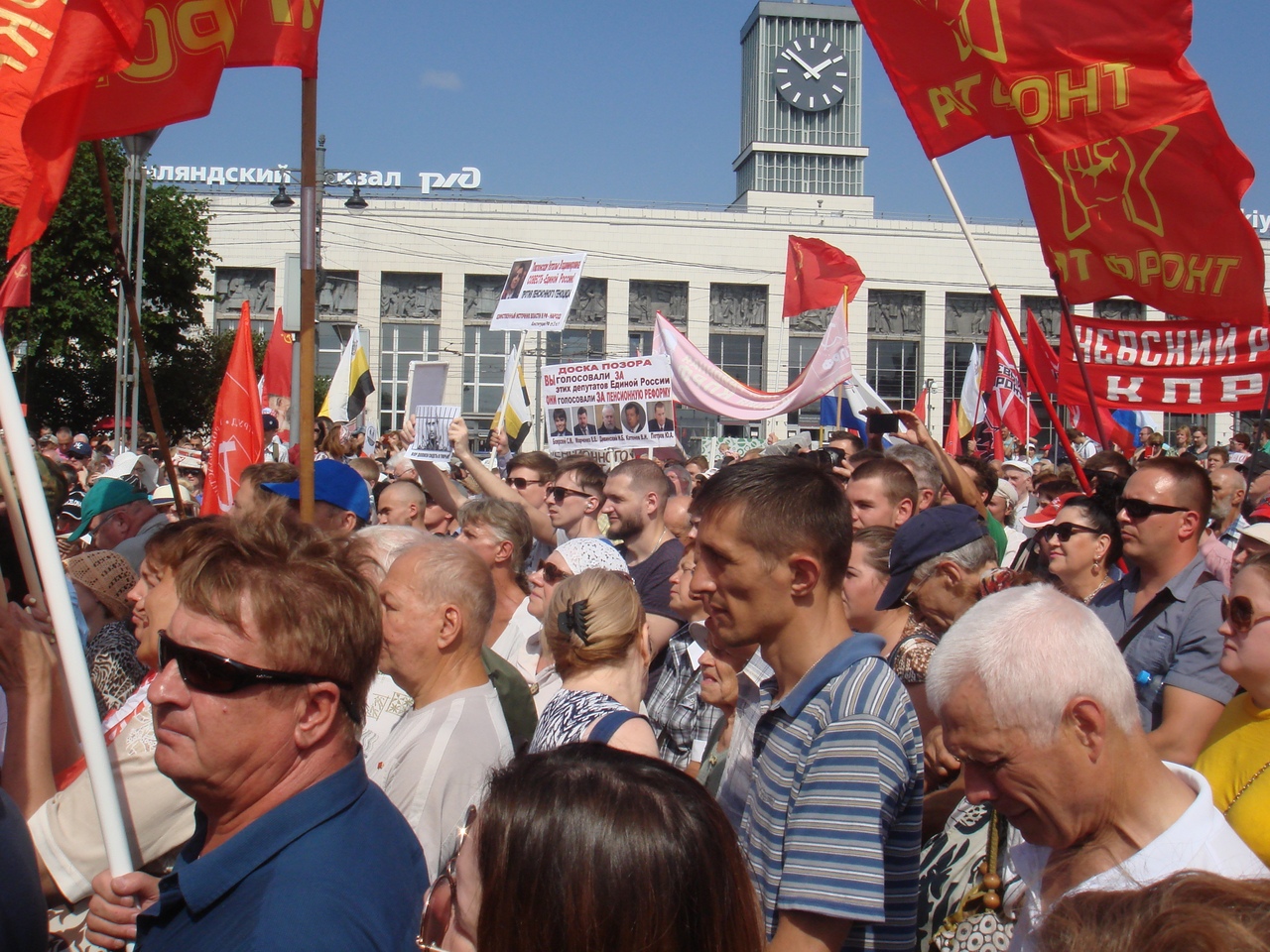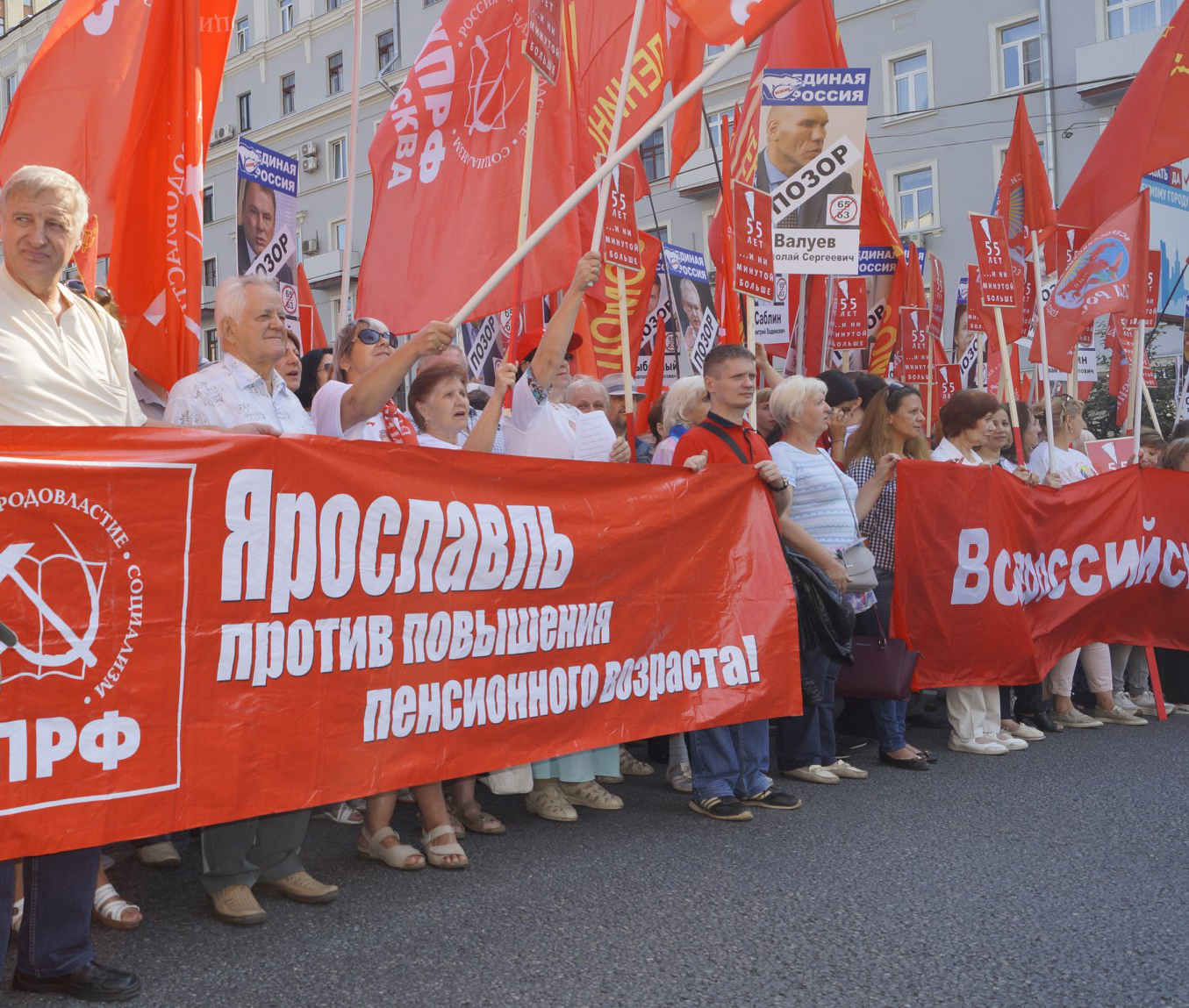 I helgen genomfördes stora protester mot den ryska regeringens planerade höjning av pensionsåldern i landet. En demonstration i huvudstaden Moskva samlade omkring 100.000 deltagare under parollen ”Vi finner oss inte i makthavarnas sociala terrorism mot sitt eget folk”.