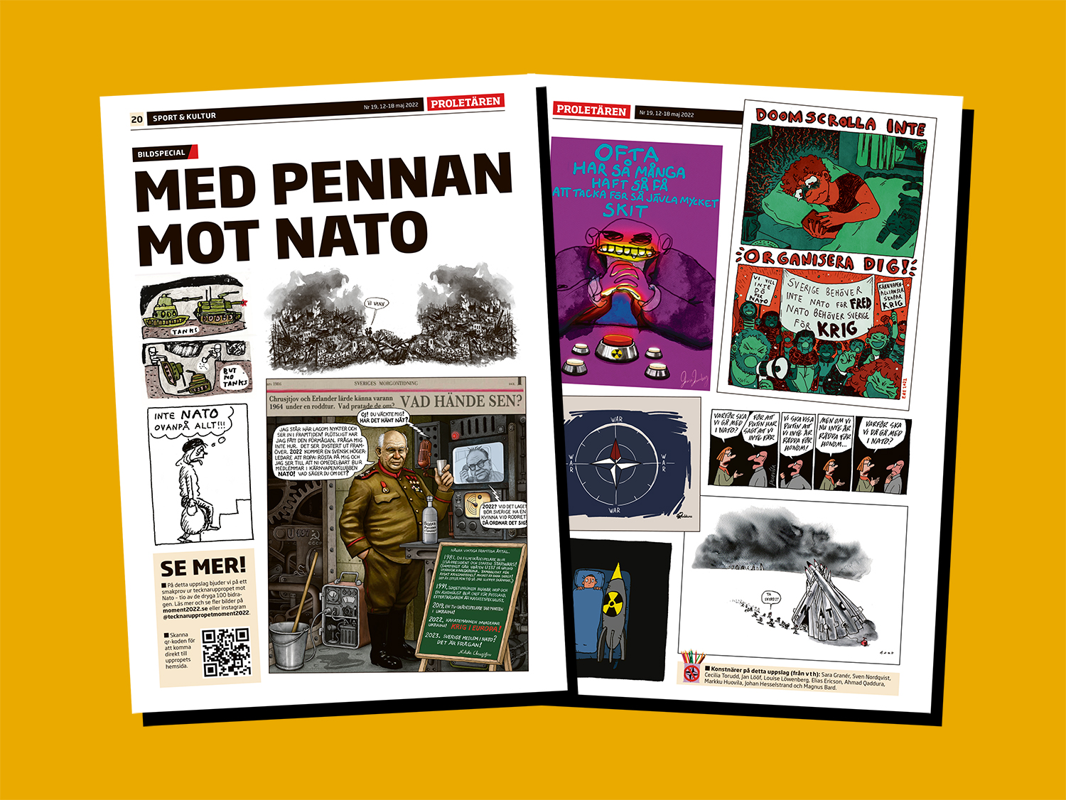 – Det var en reaktion på hur skamlöst Natolobbyn använde folks sorg och förskräckelse över kriget i Ukraina till att skrämma Sverige och Finland in i ett Natomedlemskap, berättar satirtecknaren och illustratören Karin Z Sunvisson, som tog initiativ till Moment 2022 – ett tecknarupprop mot Nato och kärnvapen.