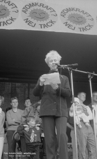 Sara Lidman engagerade sig också i folkrörelsen mot kärnkraft och kärnvapen. Hon deltog som talare på demonstrationer, som i Umeå 1986 – där tusentals tågade under parollen ”Atomkraft? Nej tack” (se bilden).