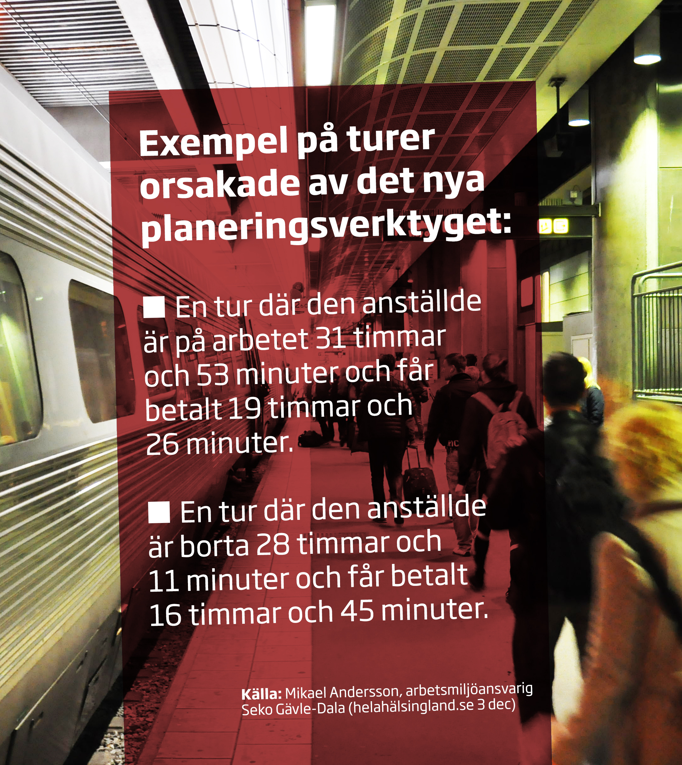 Povel Johansson berättar att tidigare, när det var människor som gjorde schemat, togs det hänsyn till personalens arbetsmiljö. Till exempel genom att inte planera in för långa pass och att se till att det fanns luft mellan avgångarna, för att personalen ska hinna med nästa tåg även om det skulle bli förseningar.