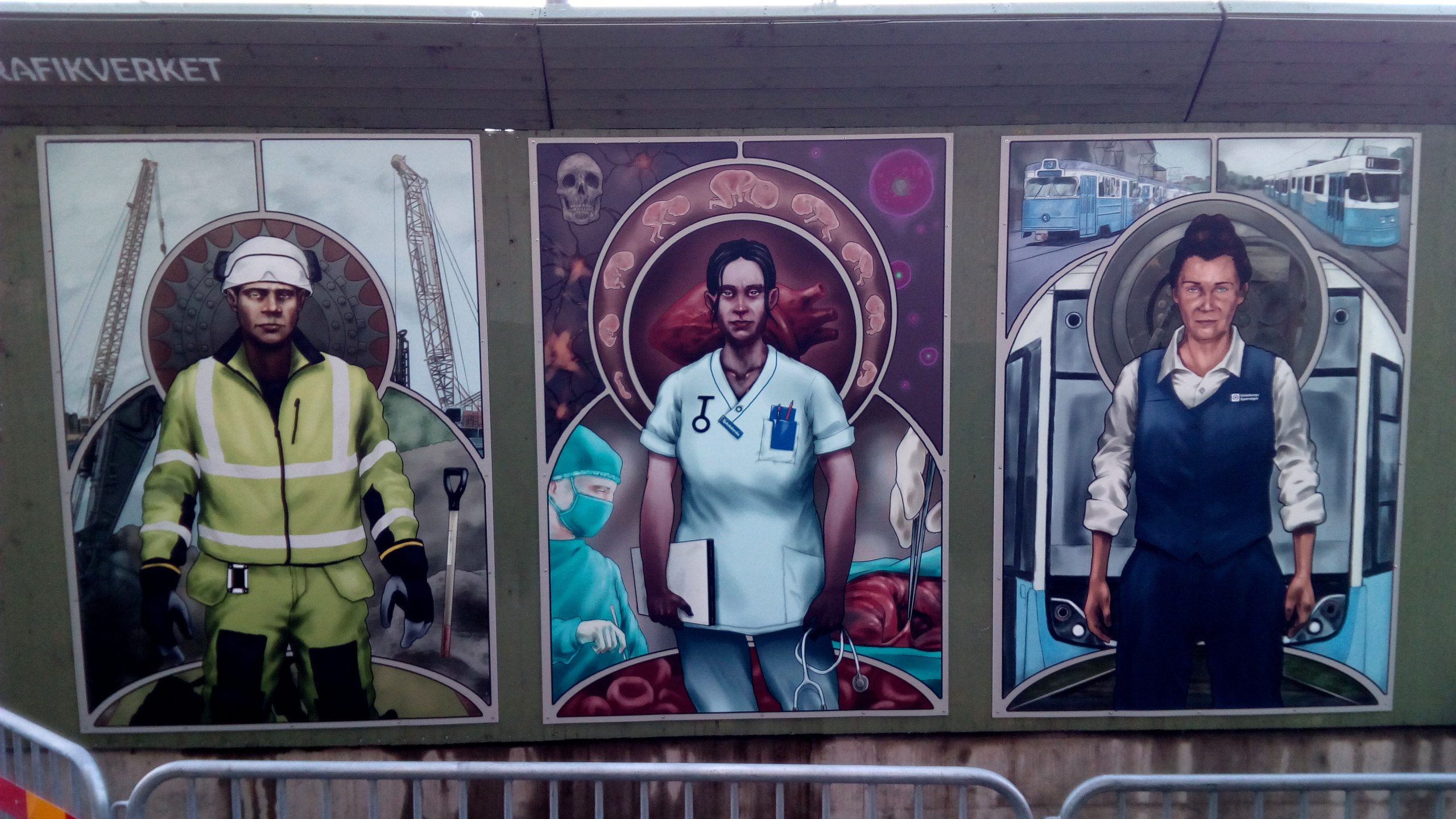 Ett verk som väckt en del uppmärksamhet är deltidsillustratören Staffan Melins ”Arbetare i Göteborg” – en triptyk (ett konstverk i tre delar) i jugendliknande stil som föreställer en byggnadsarbetare, en sjuksköterska och en spårvagnsförare.