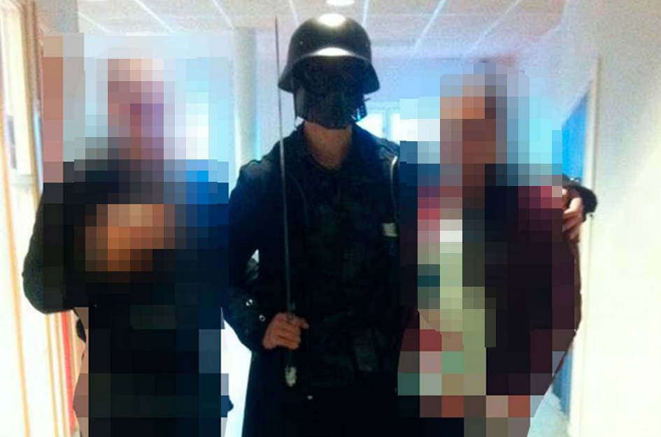 ”Han köpte naziflagga eller någon duk och sen en tysk kamouflagejacka och gick runt på skolan och hailade men mest i klassrummet och han sa att var nazist och det har han fortsatt med till nu.”