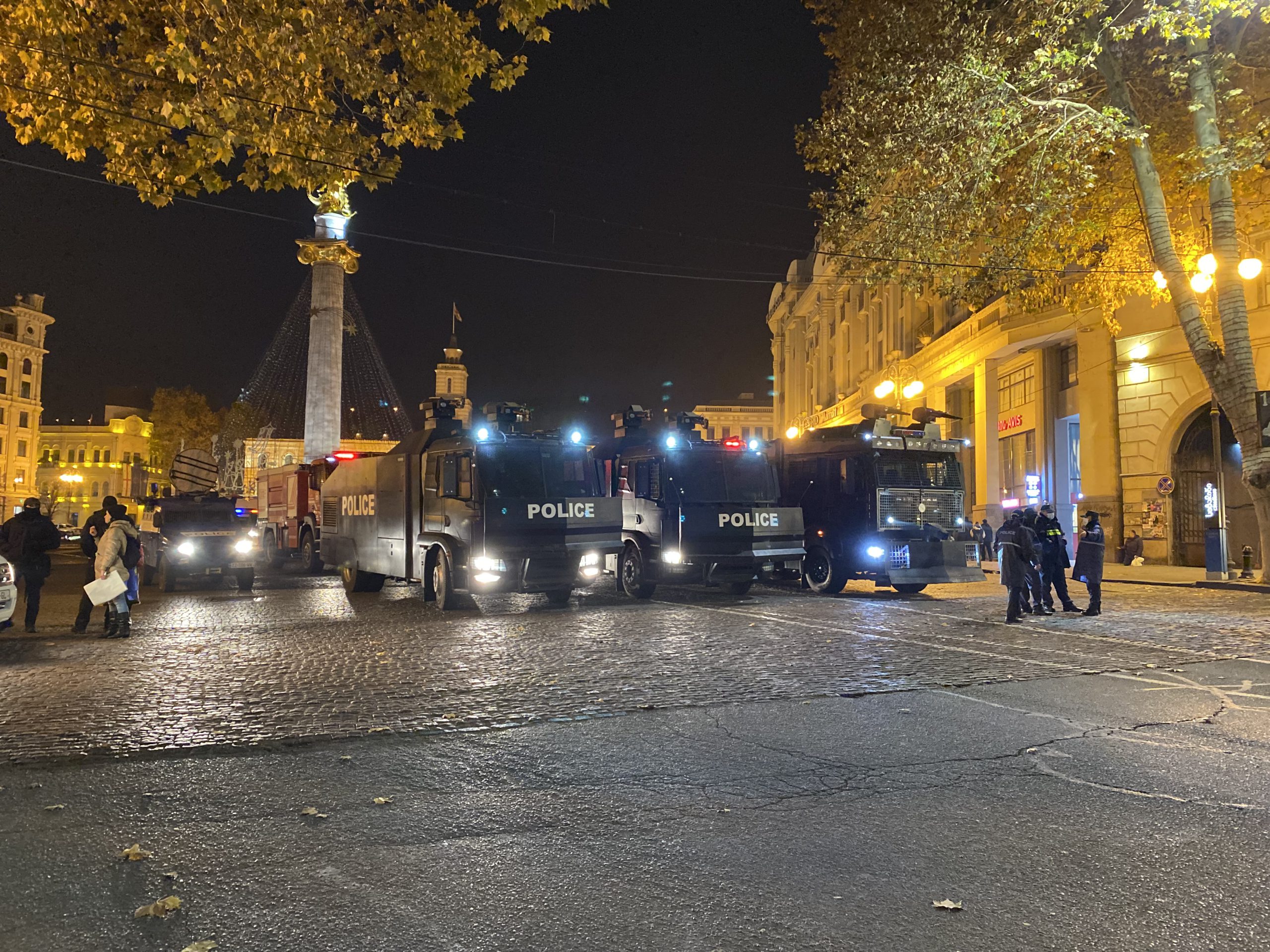 Det blev inte mycket sömn den natten och inte heller de tre följande. Vårt hotell låg bara på ett par hundra meter från Rustaveli Aveny där Georgiens parlamentet ligger, och där demonstrationerna ägt rum varje natt sedan den 28 november.