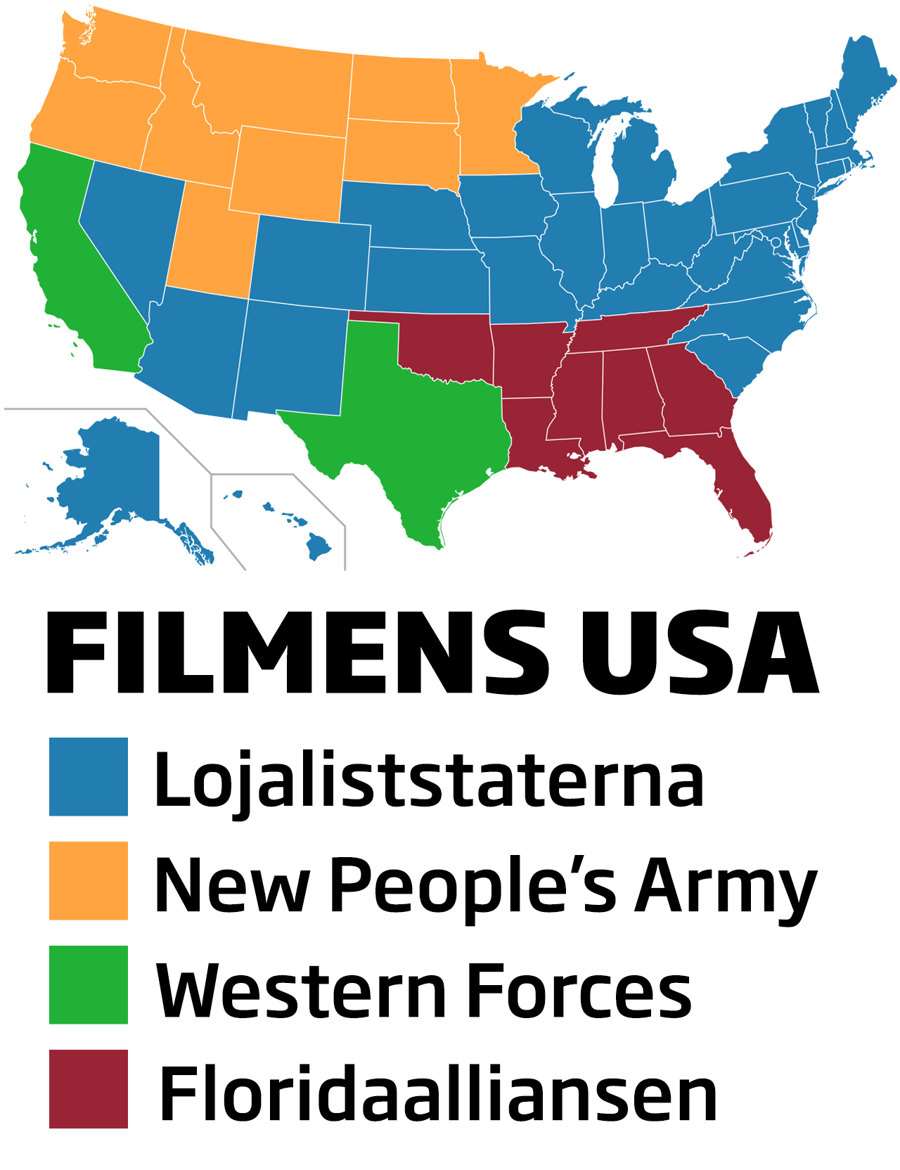 Civil War kastar in publiken rakt i ett rasande amerikanskt inbördeskrig, där flera stater har lämnat unionen och en maktgalen president (kul cameo av Nick Offerman – själv demokrat, men känd för att spela galna libertarianer) vägrar avgå.