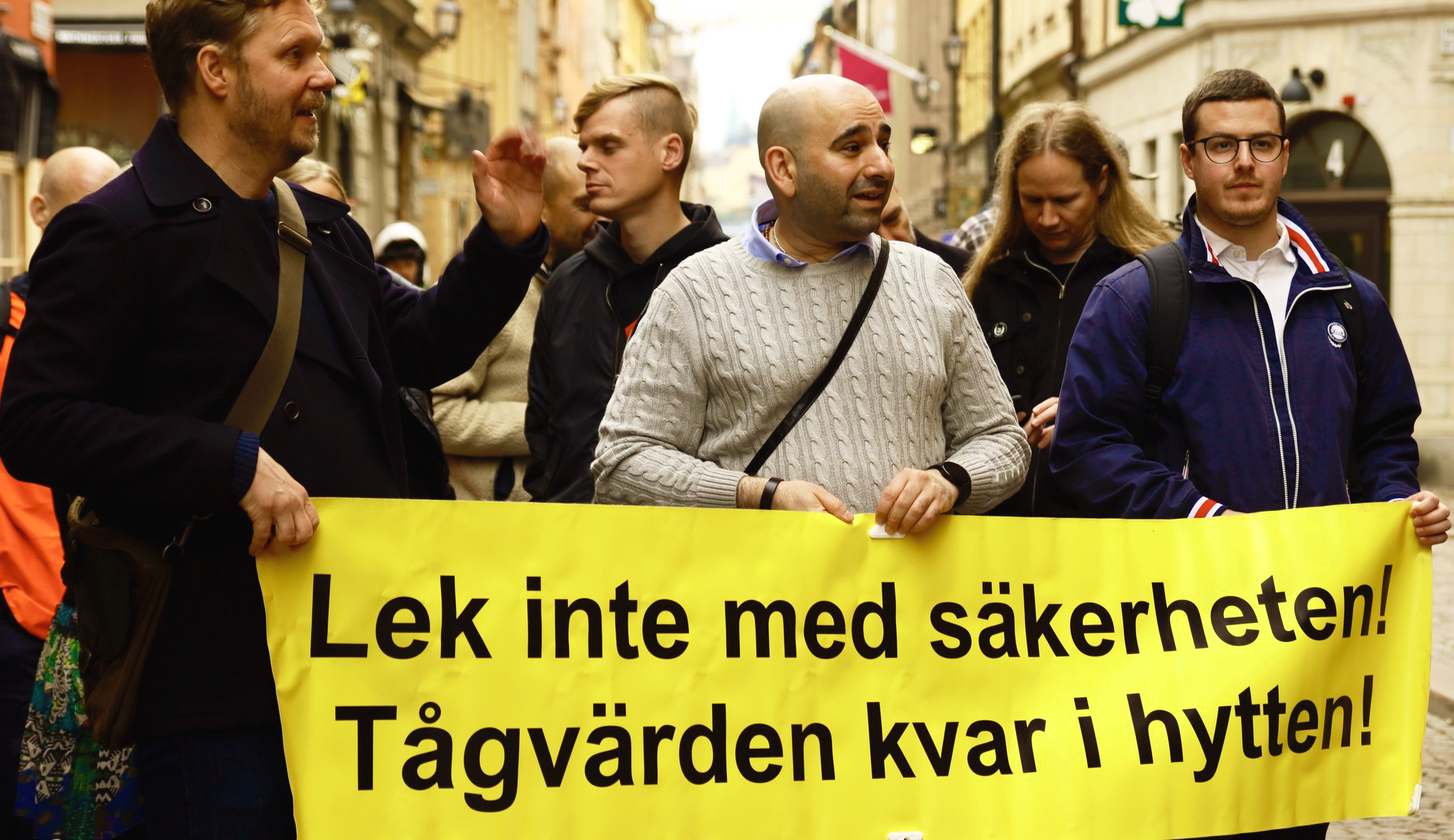Bakom parollerna ”Rör inte min tågvärd”, ”Anständiga arbetsvillkor för personalen på pendeln” och ”Arbetsdomstol – klassdomstol”, tågade 100-talet lokförare och sympatisörer på fredagsmorgonen till Arbetsdomstolen.
