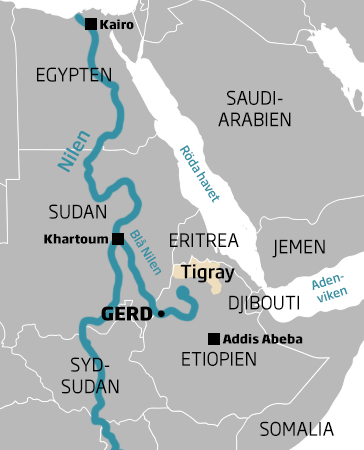 Anledningen är att Egypten är låst i en hård diplomatisk strid med Etiopien om den enorma damm som sedan tio år tillbaka byggs i landet, bara två mil från gränsen mot Sudan. Dammen, med det ståtliga namnet Stora etiopiska renässansdammen (GERD, efter sina initialer på engelska), byggs på Blå Nilen som rinner från Tanasjön i Etiopien, och vattenkraftanläggningen kommer att bli Afrikas största.