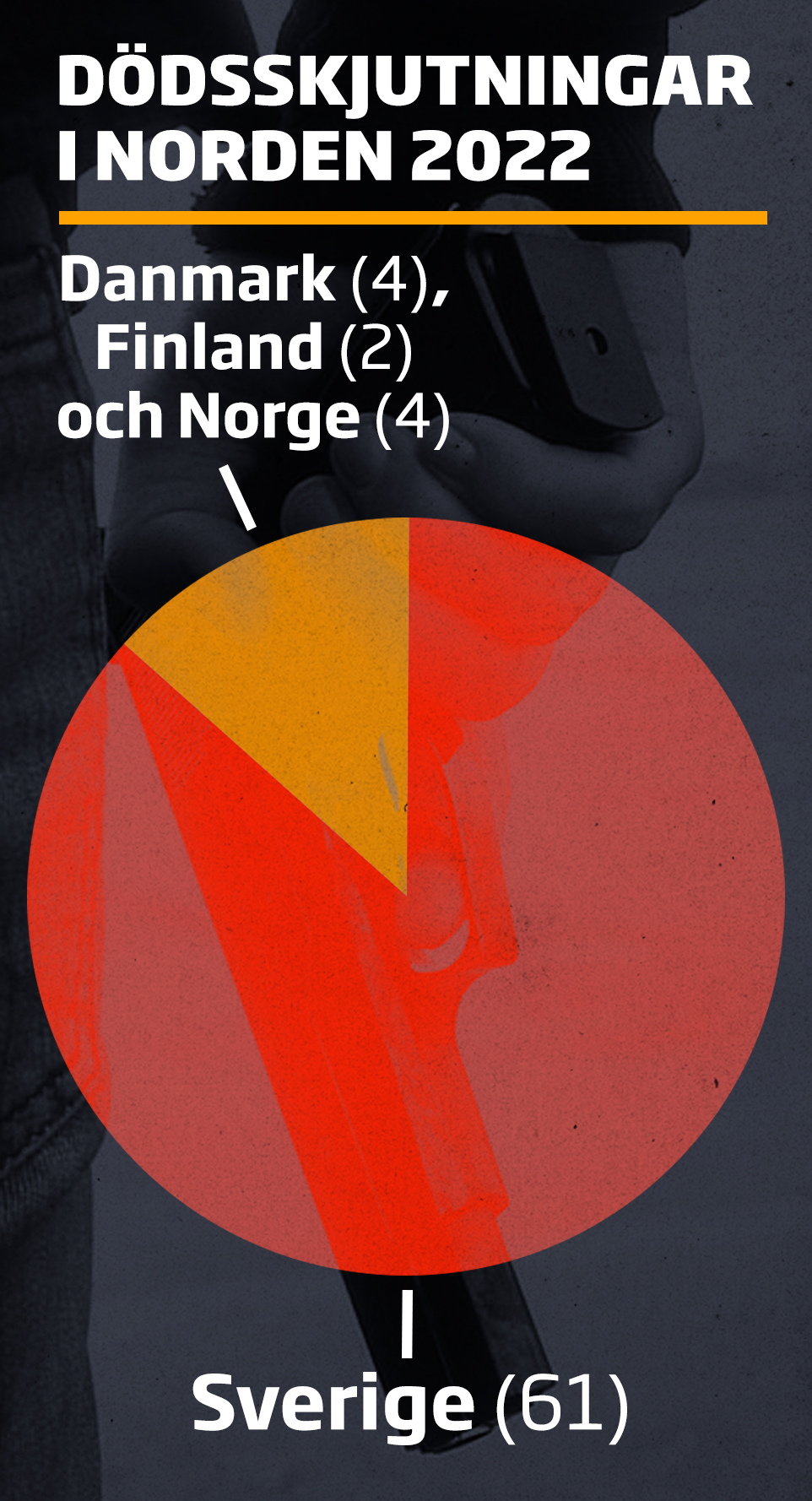 Under perioden 1 januari-7 december 2022 hade Danmark fyra fall av dödligt skjutvapenvåld, Finland hade två och Norge fyra. Det sköts alltså mer bara i Järvaområdet i Stockholm än i hela övriga Norden.
