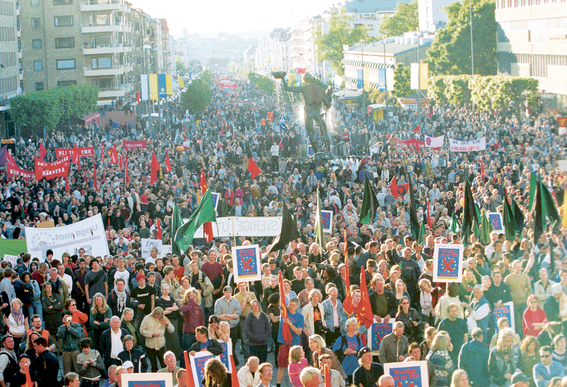 Jag stod som ansvarig för demonstrationen och var också mötesordförande ihop med Ingela Mårtensson från Folkkampanjen Nej till EU (FNEU). Bland talarna på det avslutande mötet på Götaplatsen var Kommunisternas dåvarande ordförande Anders Carlsson, Vänsterpartiets Gudrun Schyman, den socialdemokratiske riksdagsmannen och FNEU:s Sören Wibe med flera. En av talarna, Jan Myrdal, sa till mig när han såg ut över Götaplatsen och Avenyn att ”detta kan de inte förneka”.