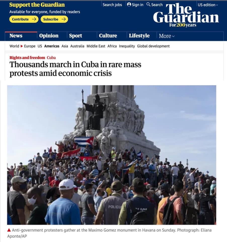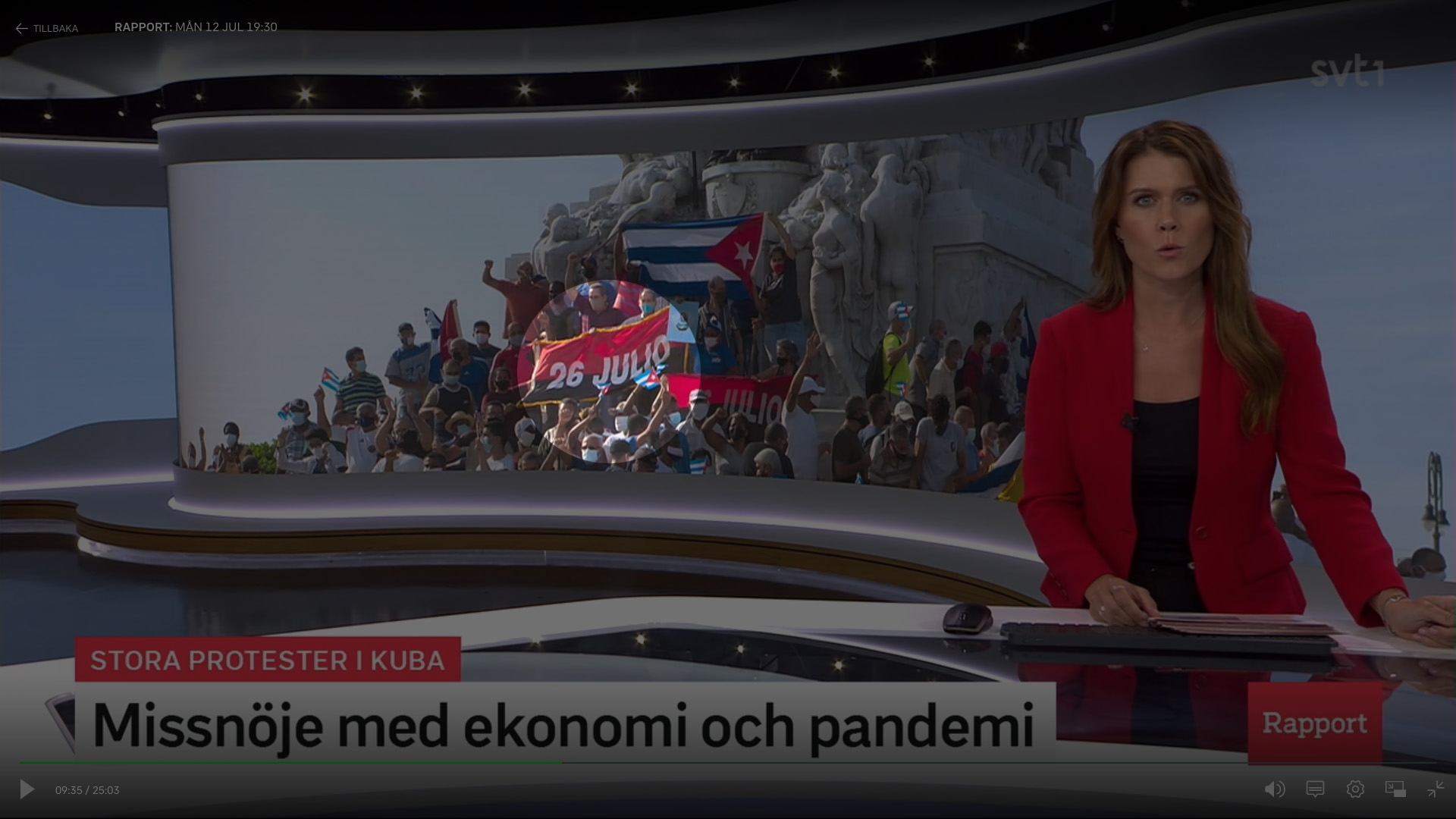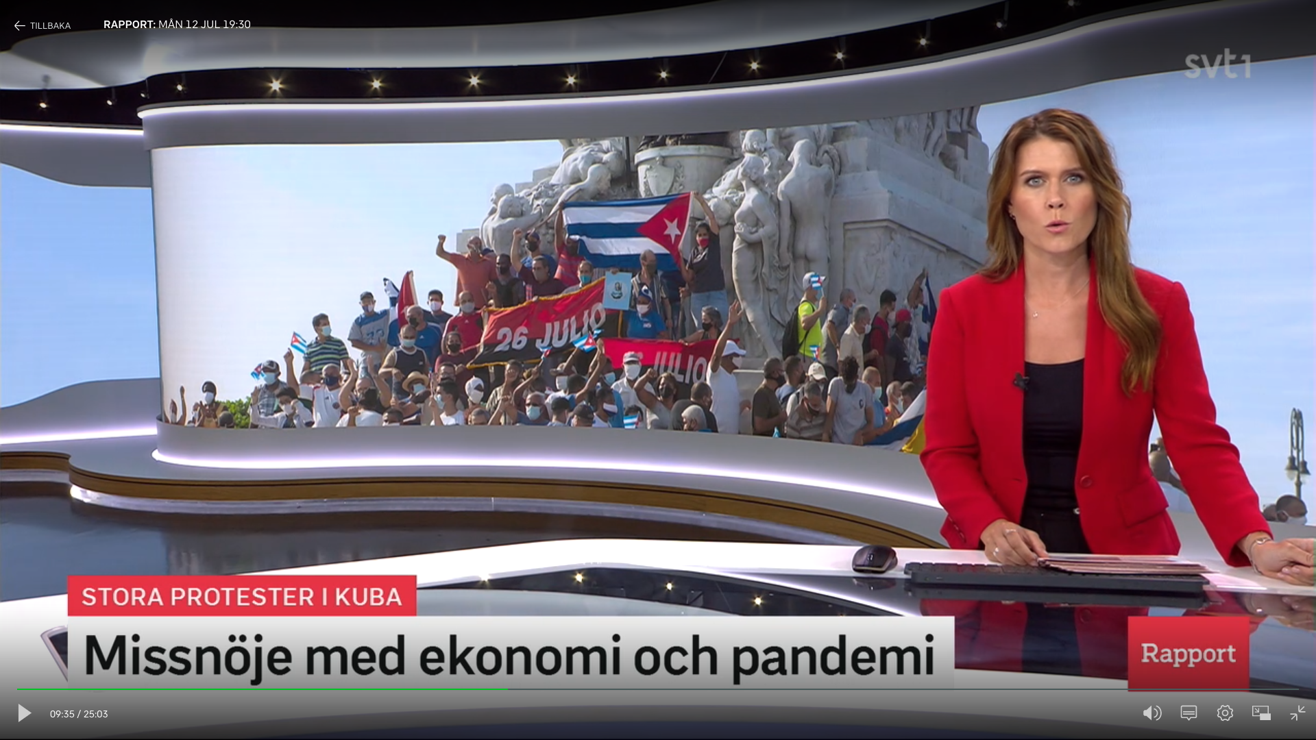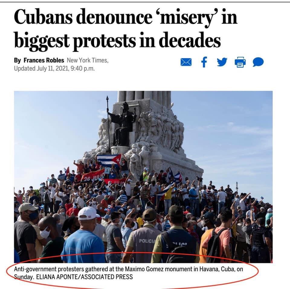 Läsare har hört av sig till Proletären om SVT Rapports inslag i måndags kl 19.30. I ett längre inslag om ”Stora protester på Kuba – missnöje med ekonomi och pandemi” visades i bakgrunden en stor demonstration – på en stöddemonstration till den socialistiska regeringen. Samma bild har används av bland annat The Guardian, New York Times och Sydsvenskan men även ”vänster”-tidningen Dagens ETC, med direkt felaktig eller missvisande bildtext.