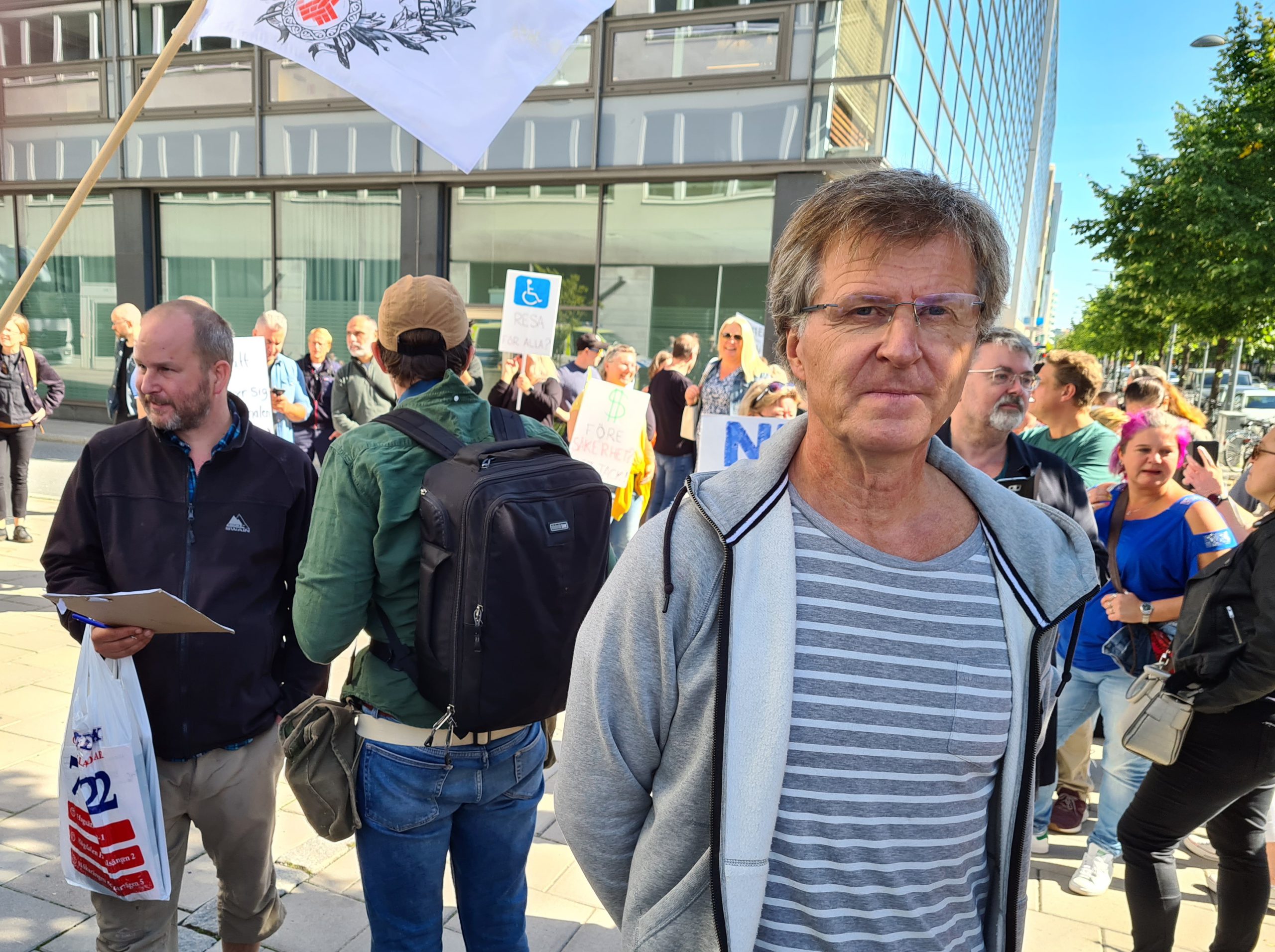 Rainer Andersson under tisdagens protest. Foto: Janne Bengtsson