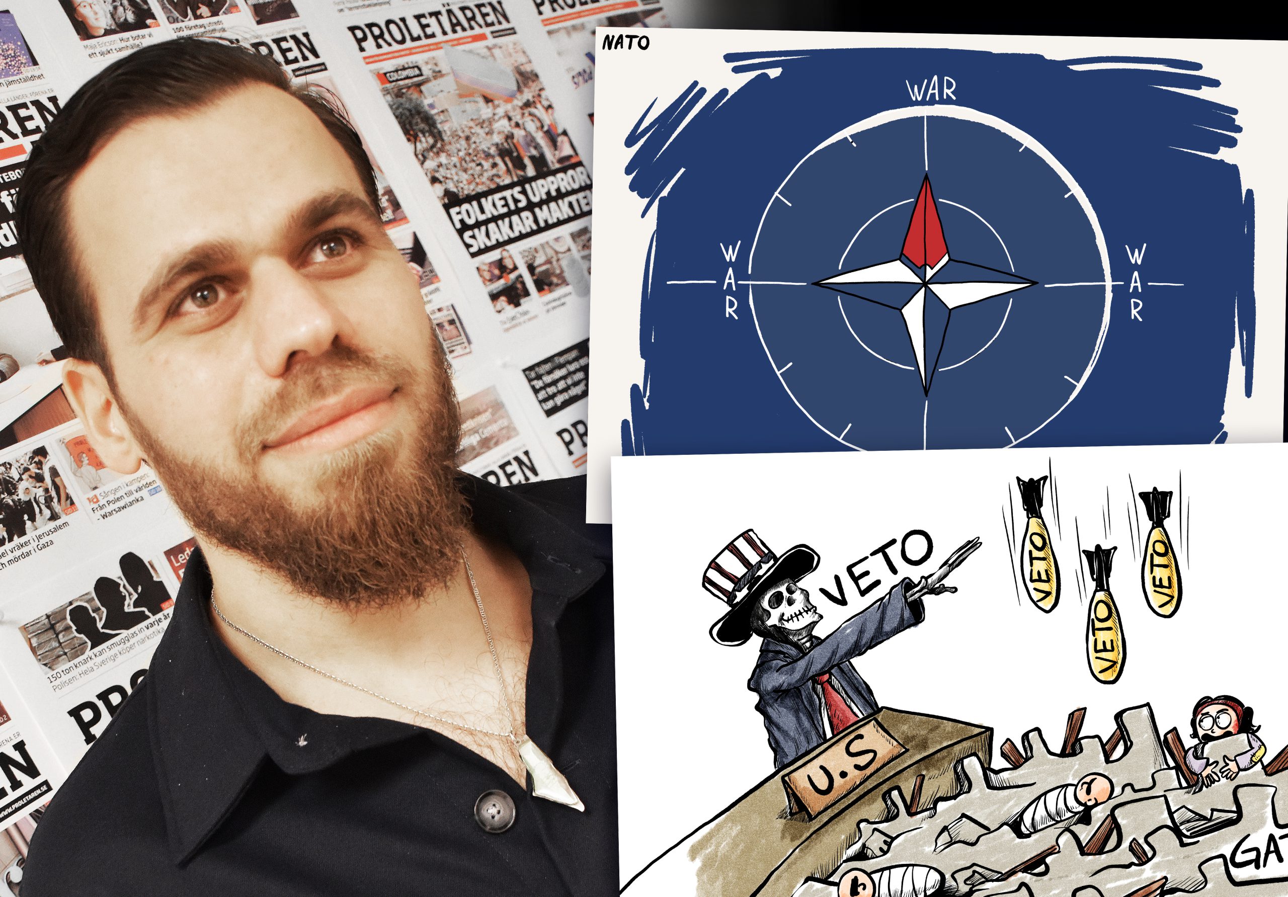 Ahmad Qaddura gillar Sverige väldigt mycket, men oroar sig över att hans nya hemland är på väg in i Nato. Han är en av över 100 serietecknare och bildkonstnärer som är med i tecknaruppropet mot krigsalliansen.