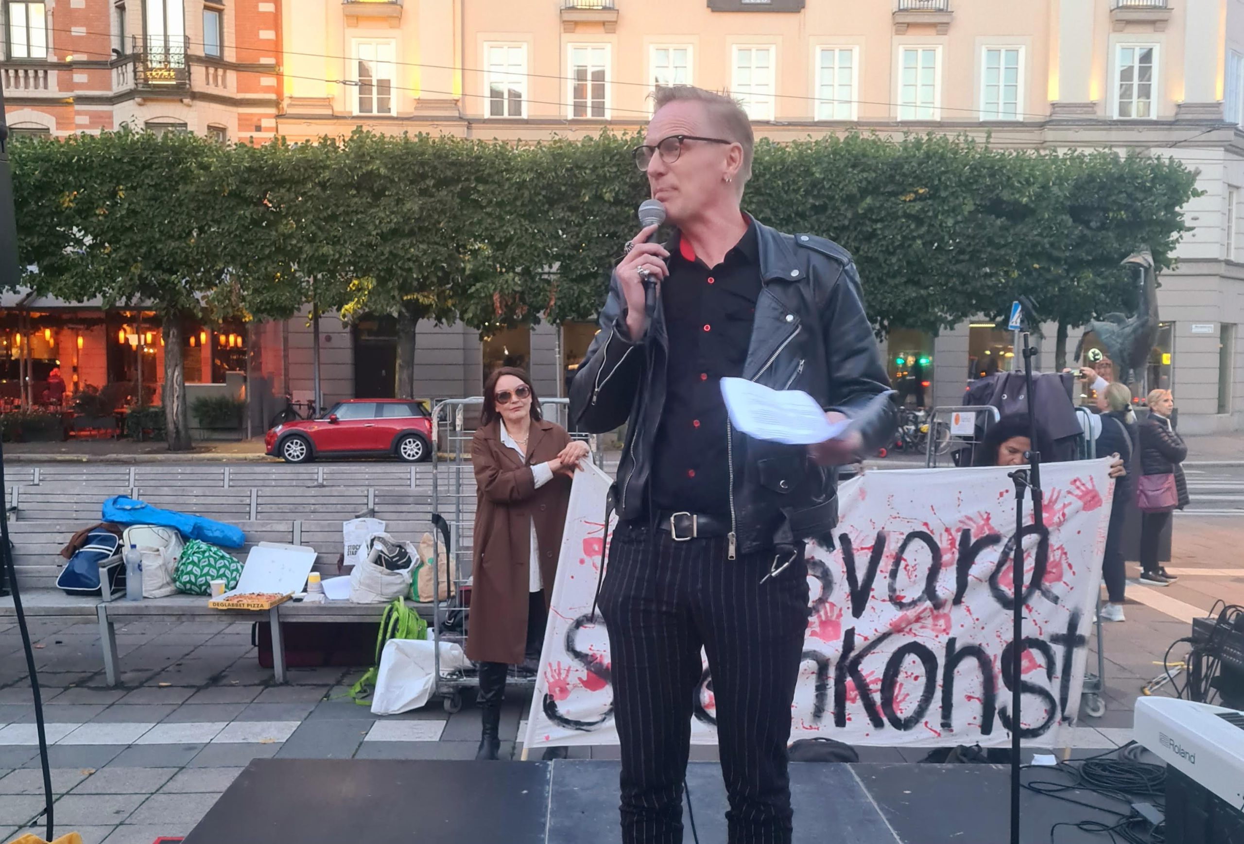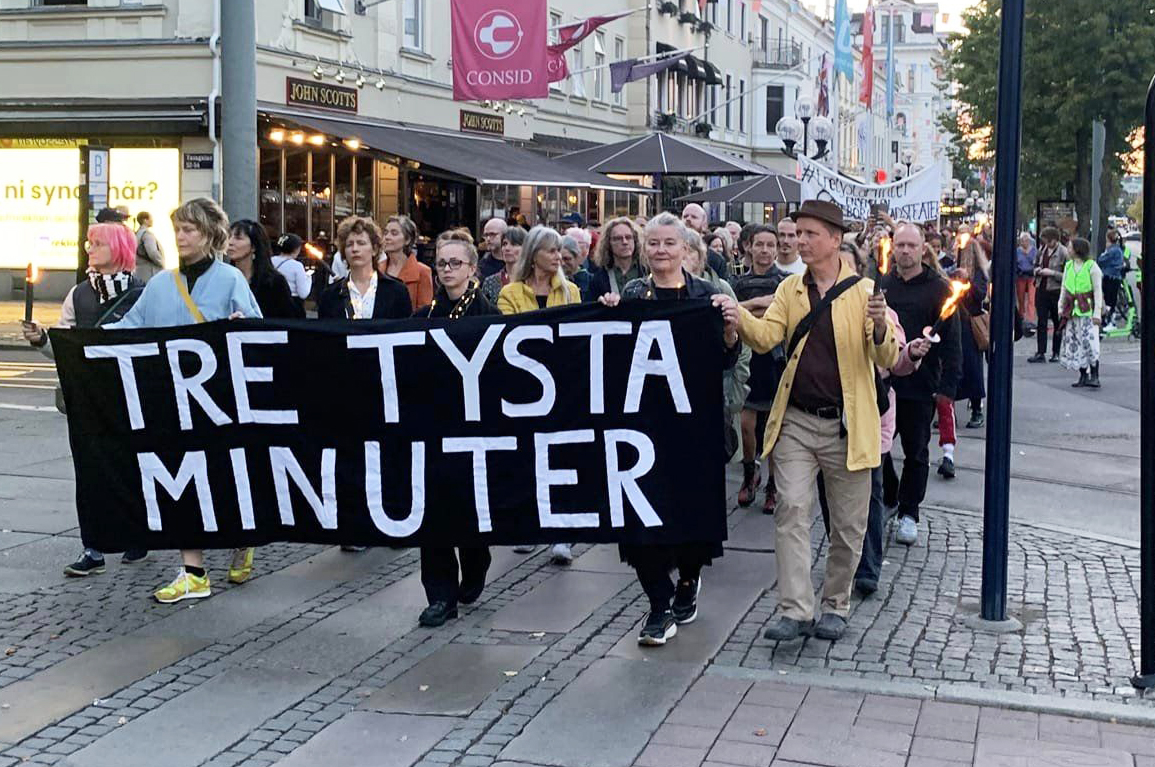 På Norrmalmstorg i Stockholm samlades runt 500 personer för att protestera mot den SD-ledda regeringens nedskärningar på kulturen. Exakt klockan 20.15 stannade all aktivitet på torget av i tre tysta minuter.