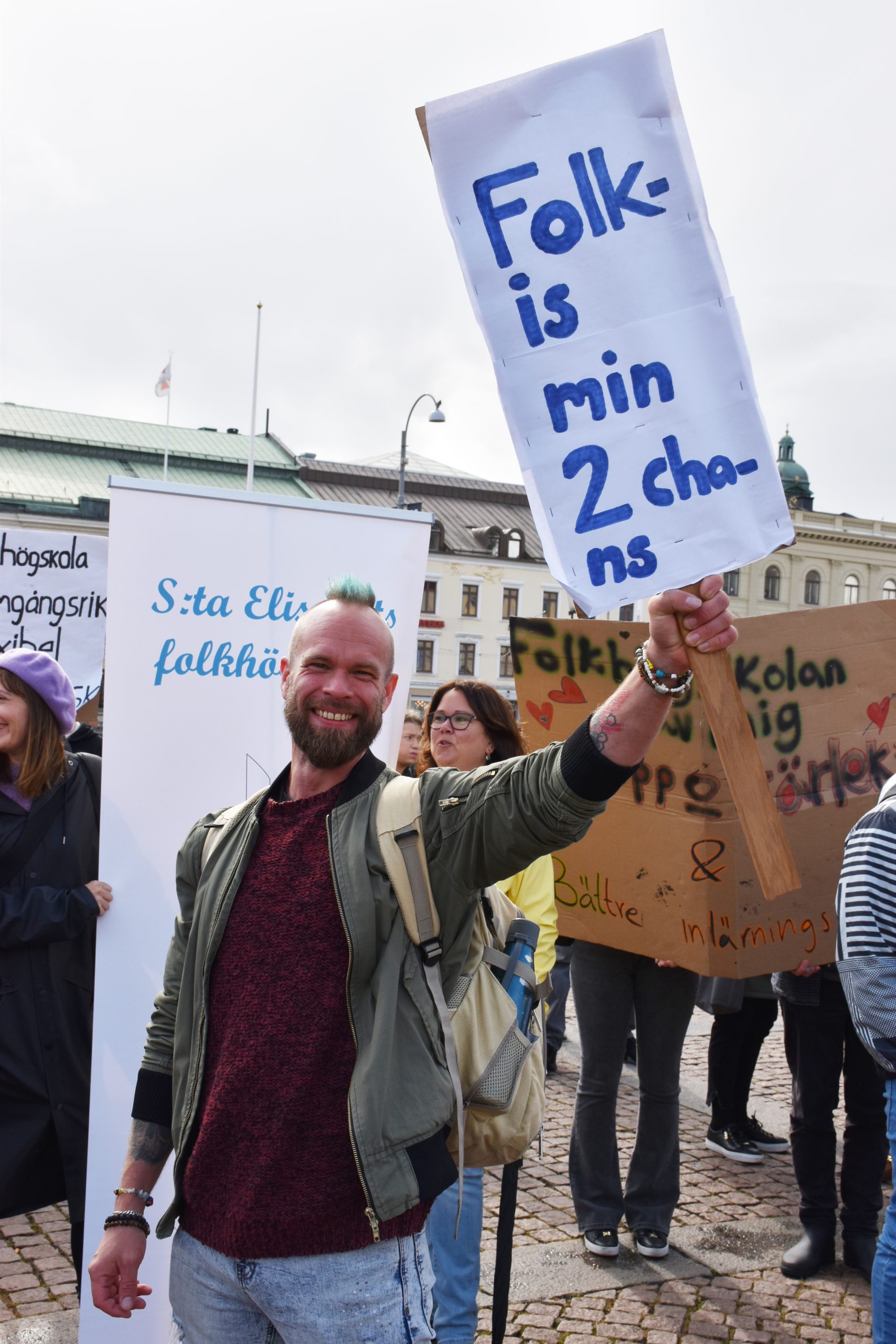 Sara Levelius är lärare på Nordiska folkhögskolan, huvudarrangören bakom manifestationen på Gustav Adolfs Torg, hon vill framhålla att folkhögskolan är en unik utbildningsform som är viktig för väldigt många.